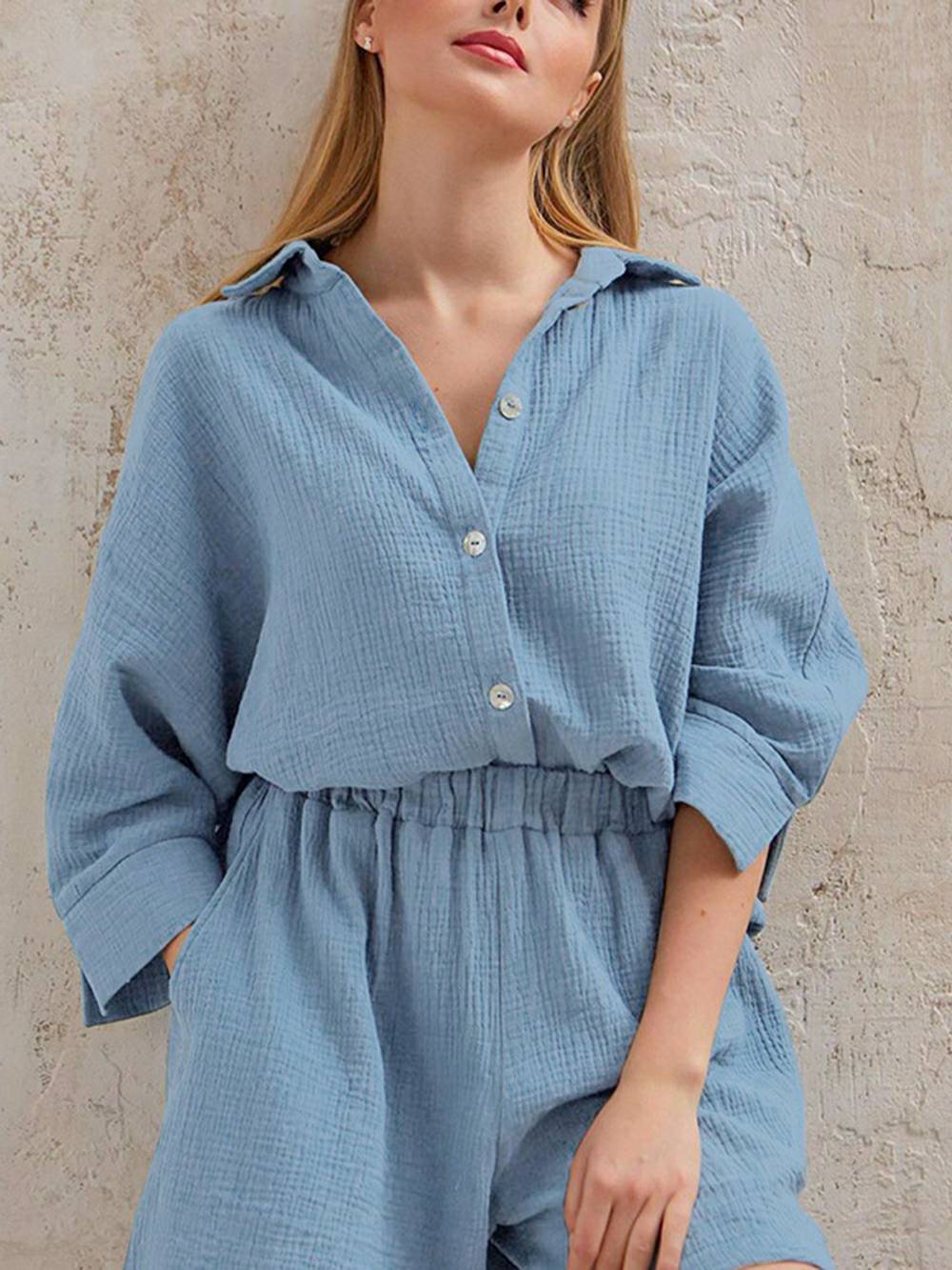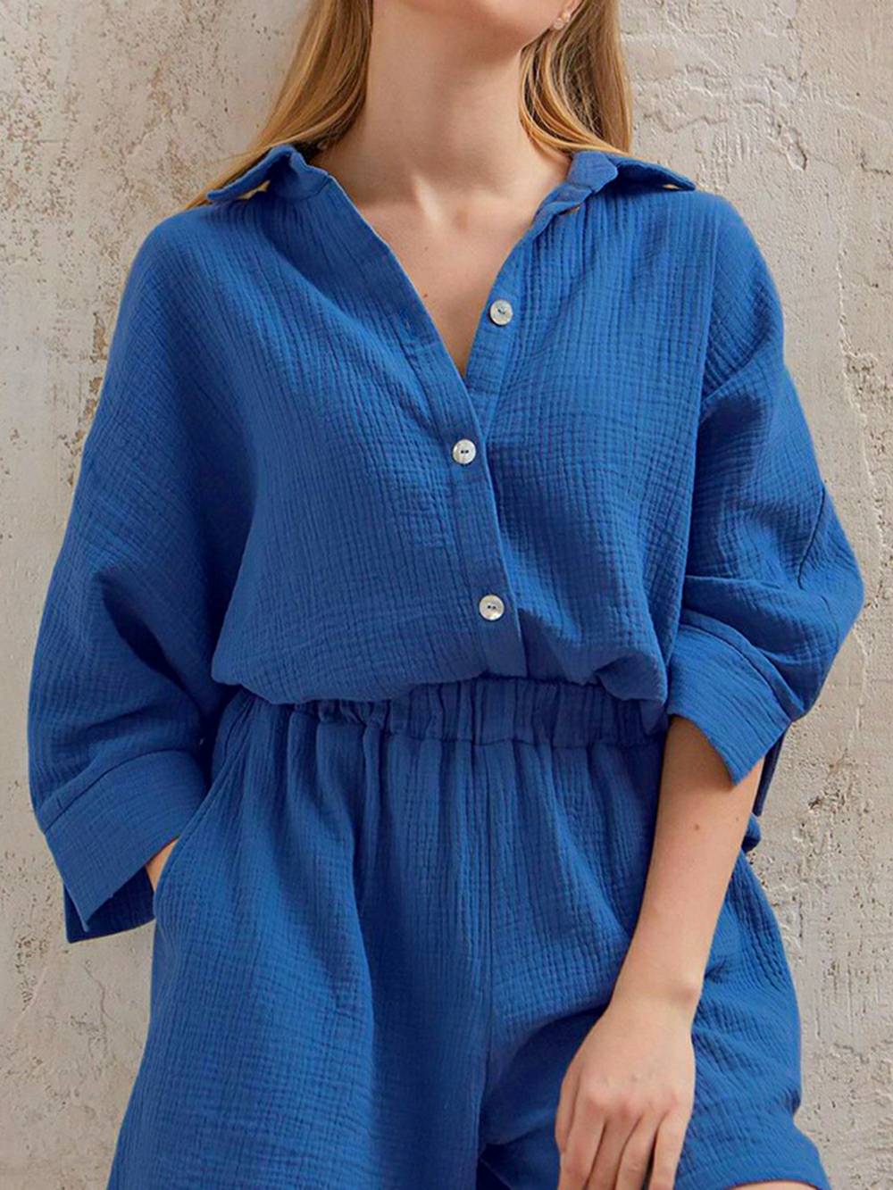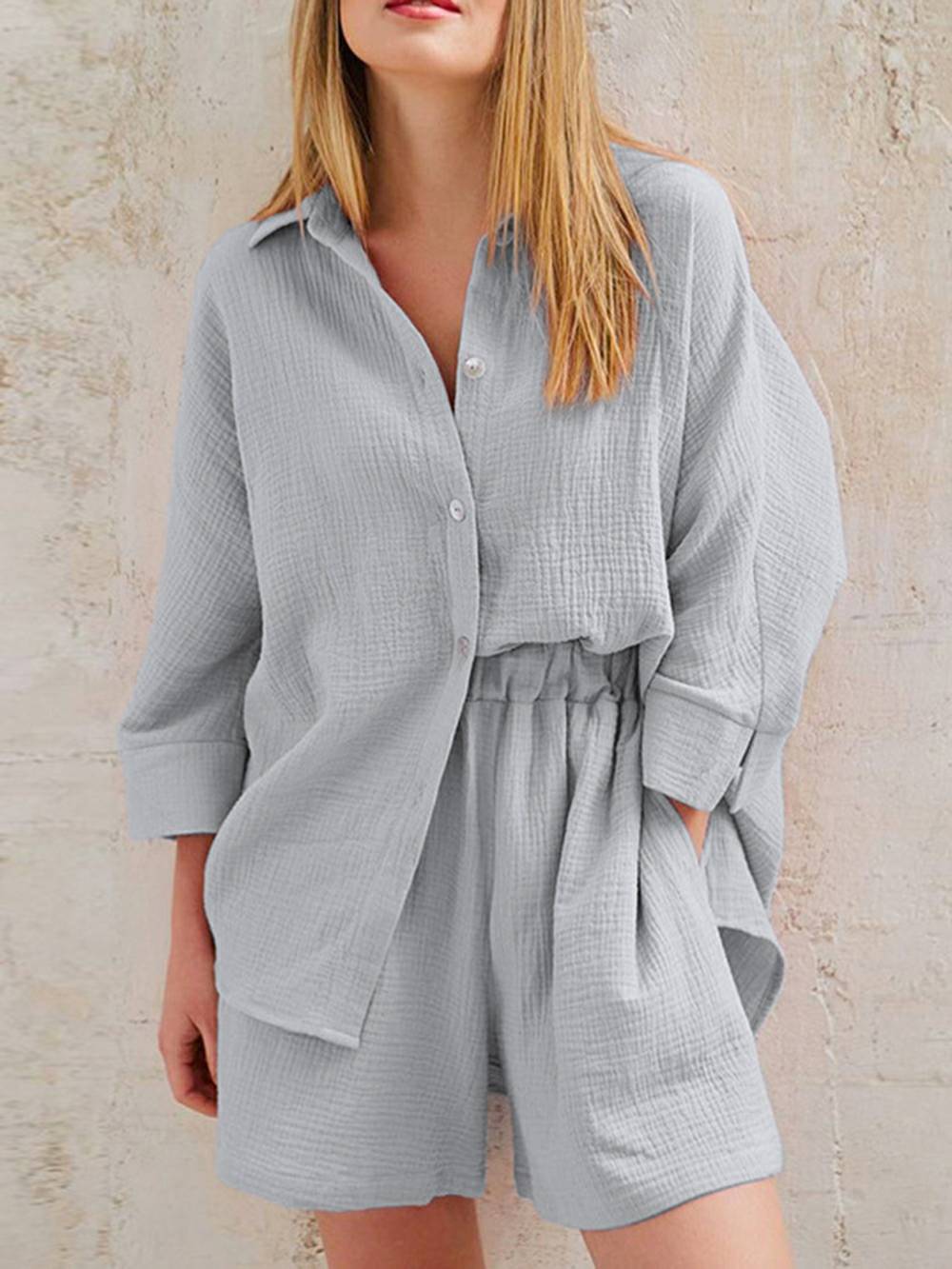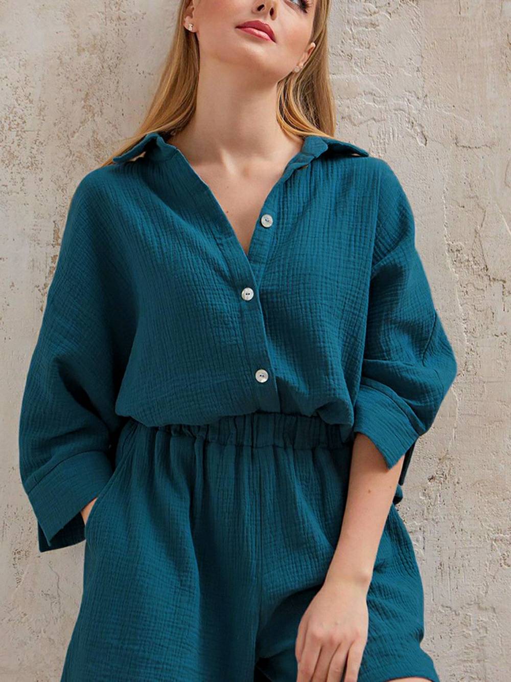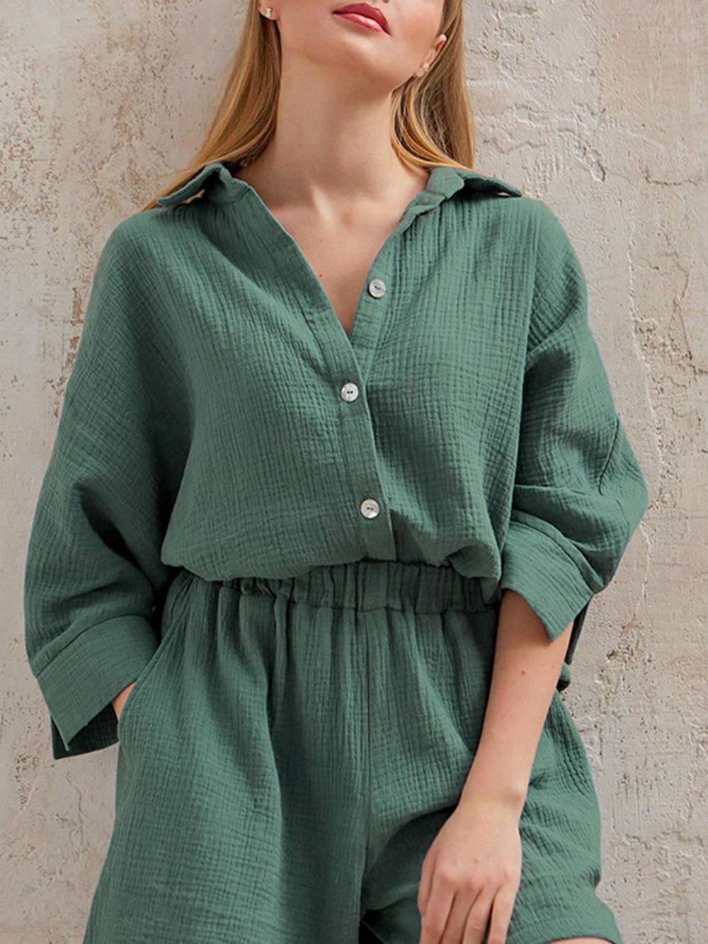Looking for something feminine. stylish. and comfortable to work from home in? Look no further than our MuseChoices Linen Set! Made from breathable linen cotton. this set is perfect for hot summer days or cozy winter nights. The blouse top features short sleeves and a button fly. while the bermuda shorts have a high waisted fit. Sustainable. anti-static. and comfortable. this set is perfect for any woman who wants to feel like a boss!