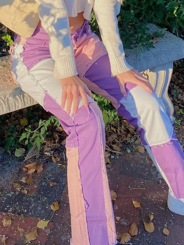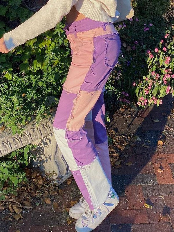 Pastel Patchwork Denim Boyfriend Jeans