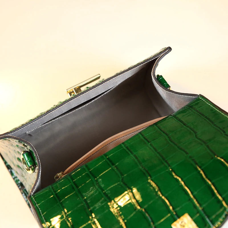Introducing the Genuine Leather Crocodile Crossbody Bag - where elegance meets durability! With its stunning crocodile patterns. this stylish yet lightweight bag will perfectly complement any outfit you choose. Its high-quality materials ensure maximum durability while providing ample space for all your essentials. Now available in green. black. and white.