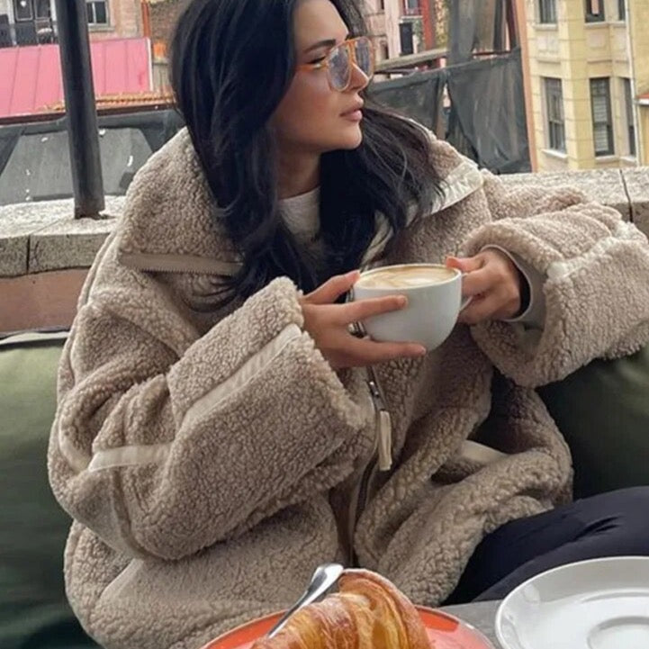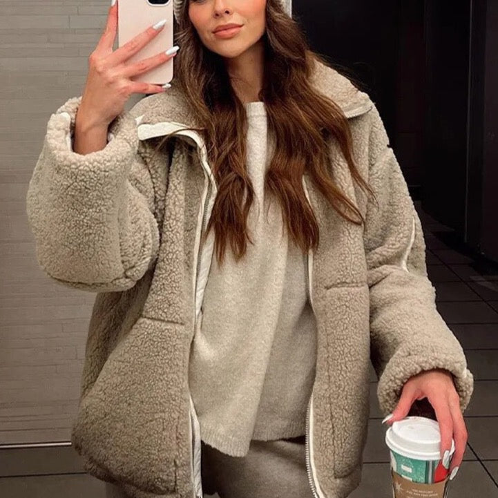 Peppi Faux Teddy Bear Lamb Wool Bomber Jacket