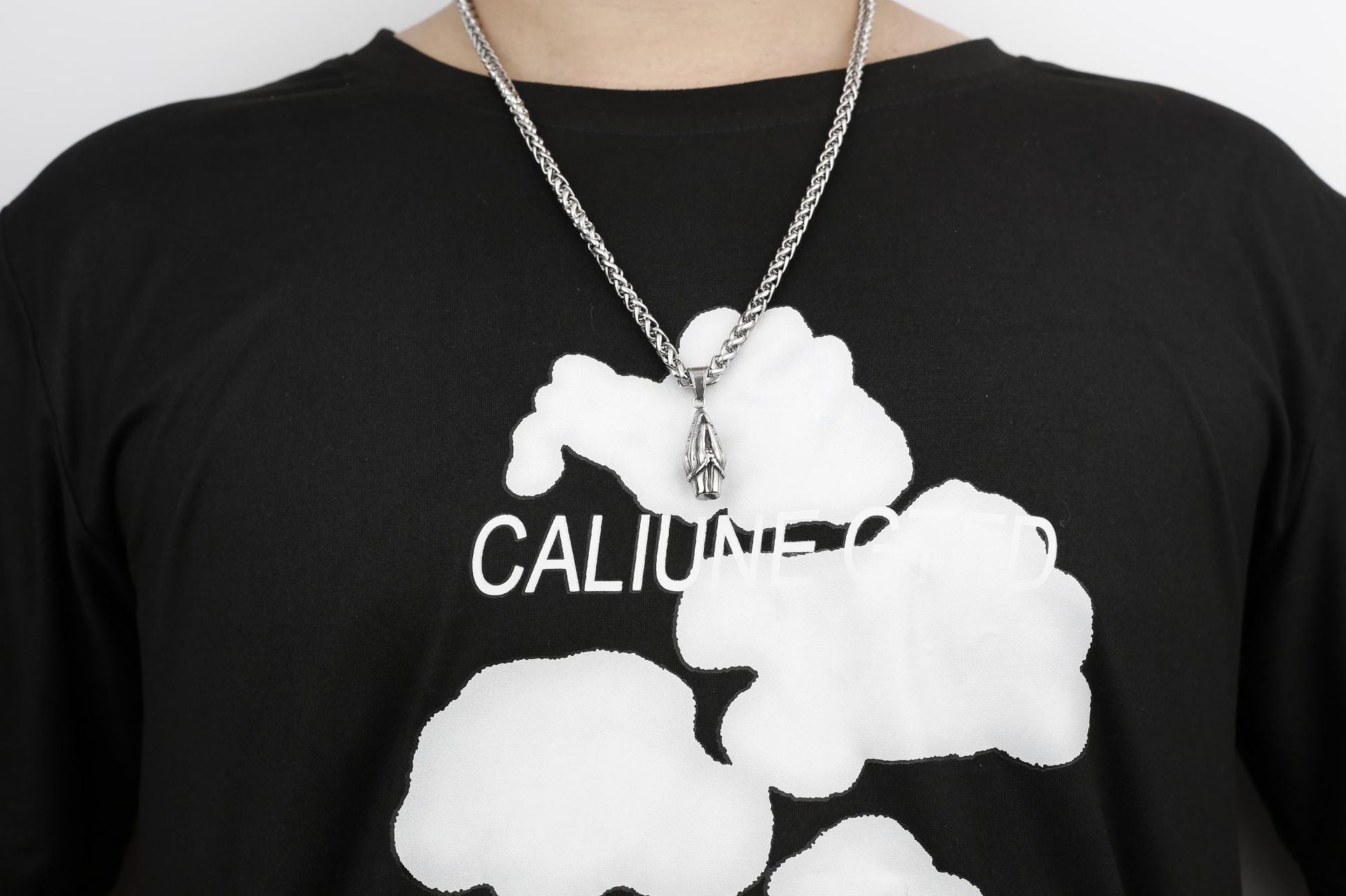 Praying Hands with Rosary Necklace