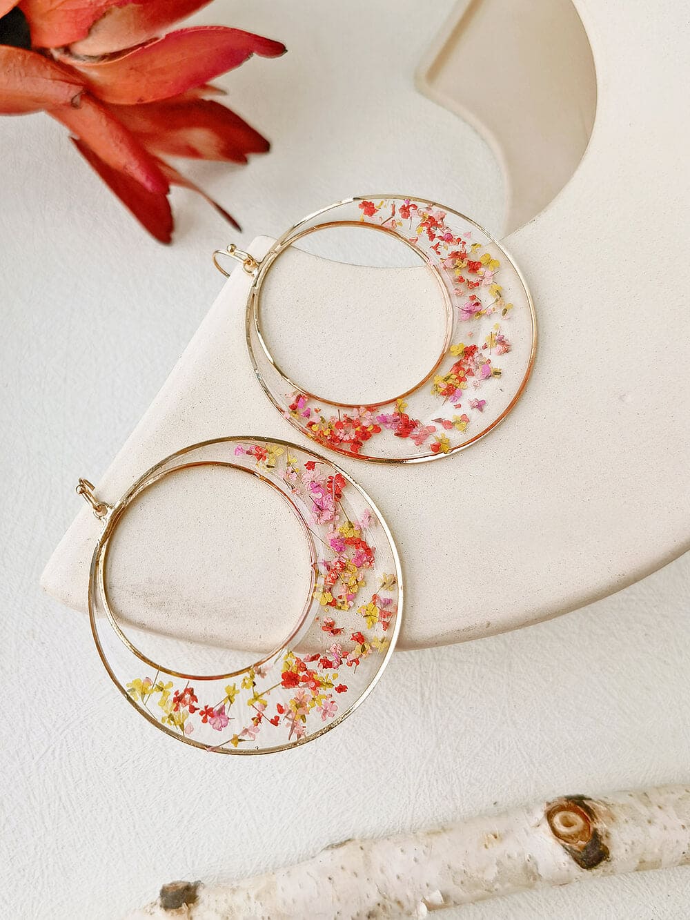 Queen Anne Lace Dried Flowers Large Hoop Earrings