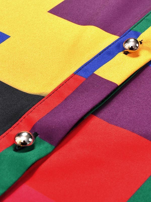 Rainbow Vintage Checkered Button Down Short Sleeve Blouse