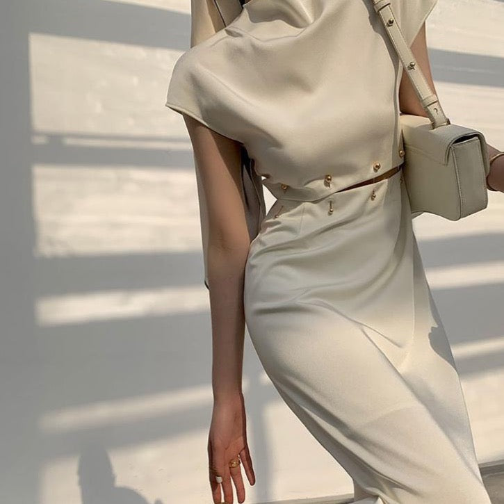 Regina Minimalist Sheath Dress with Cut Out Waist