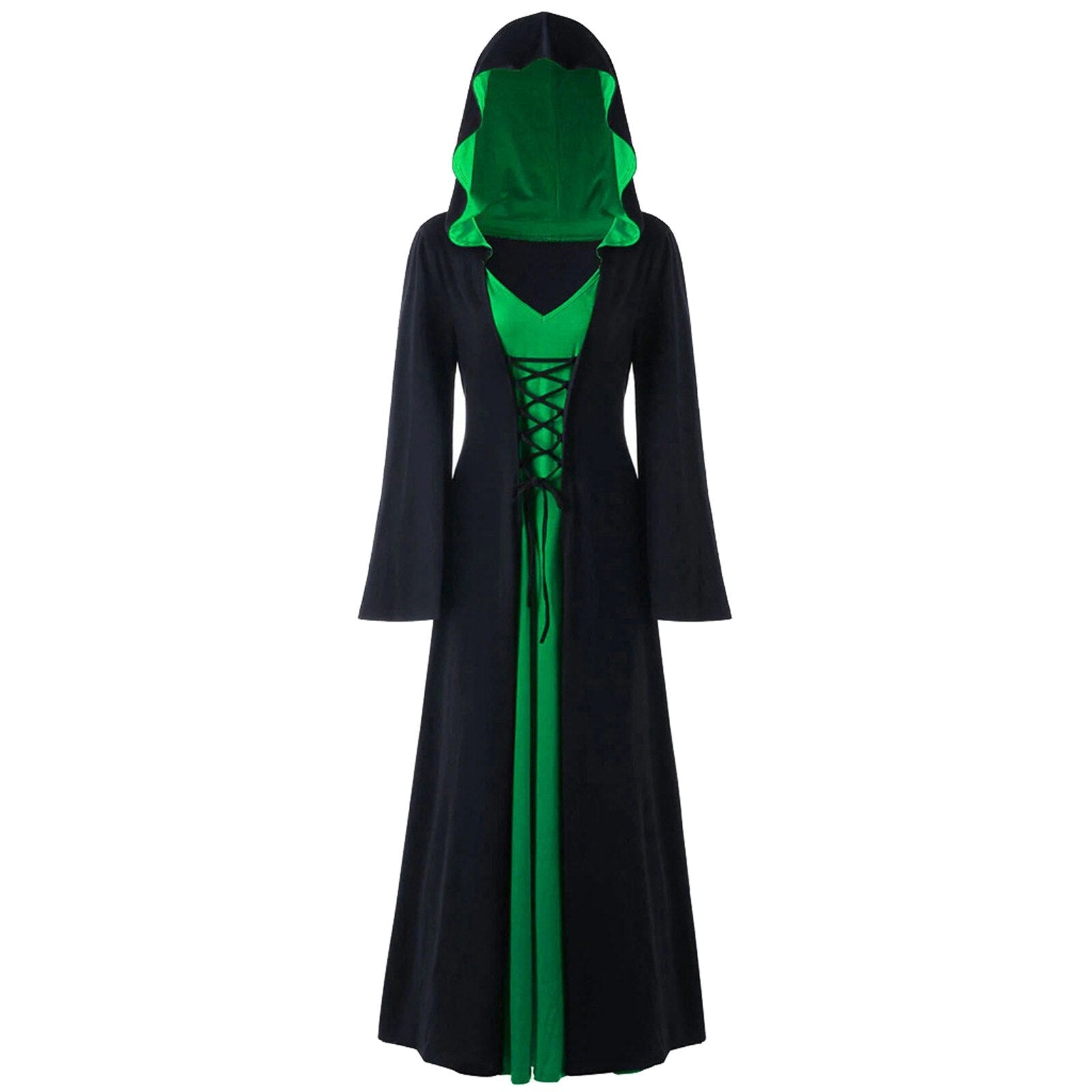 Retro Christmas Costume Plus Size Hooded Lace Up Patchwork Dress
