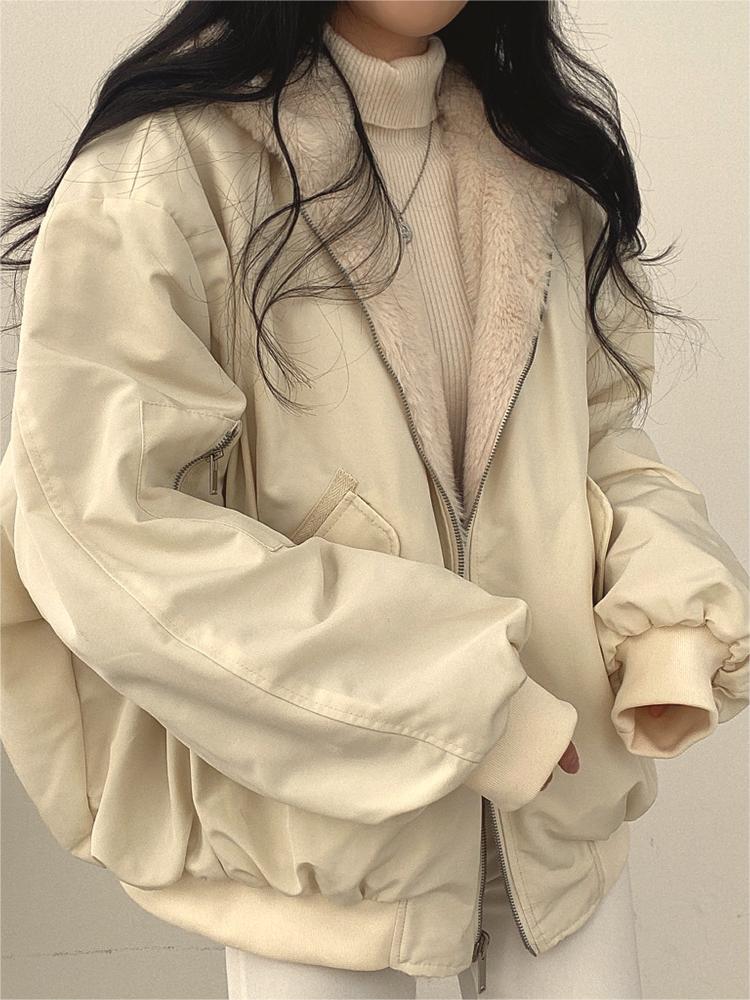 Description: This padded black fleece jacket can be worn on both sides to create two different looks. With a relaxed cut. it features front pockets. overcut long sleeves and a zipped design.