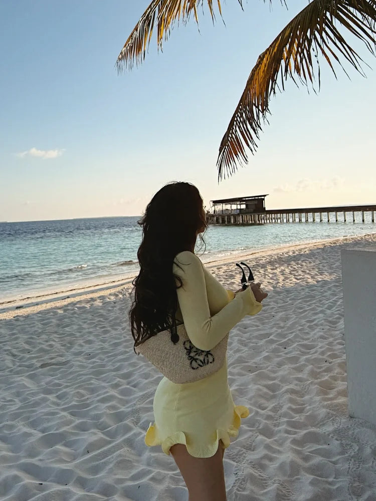 Ruffle Hem High Waist Long Sleeve Mini Dress