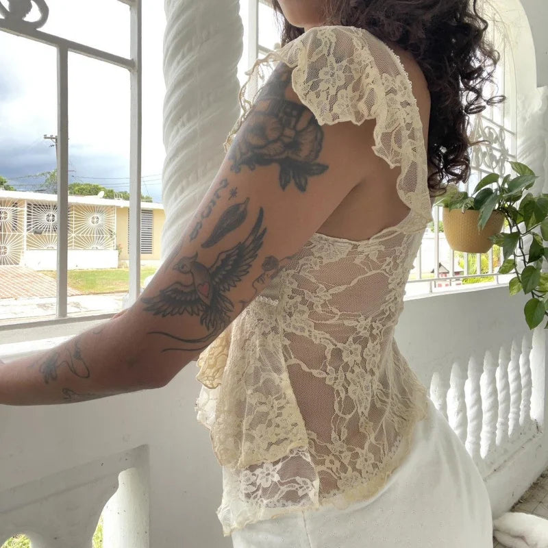See-Through V Neck Tank Crop Top
