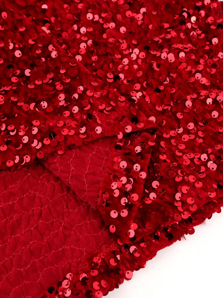 Sequins Dress Cold Shoulder Velvet Short Flare Sleeve Luxury Evening Party Gowns