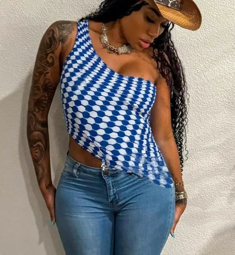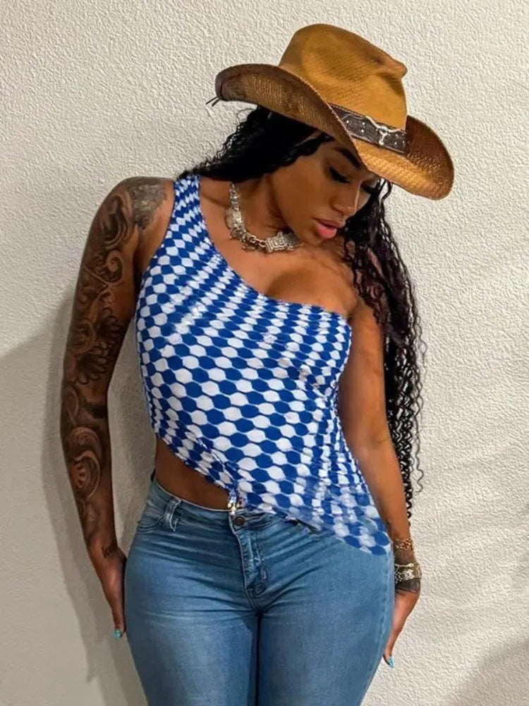 One Shoulder Asymmetrical Geometric Y2K Cami Top