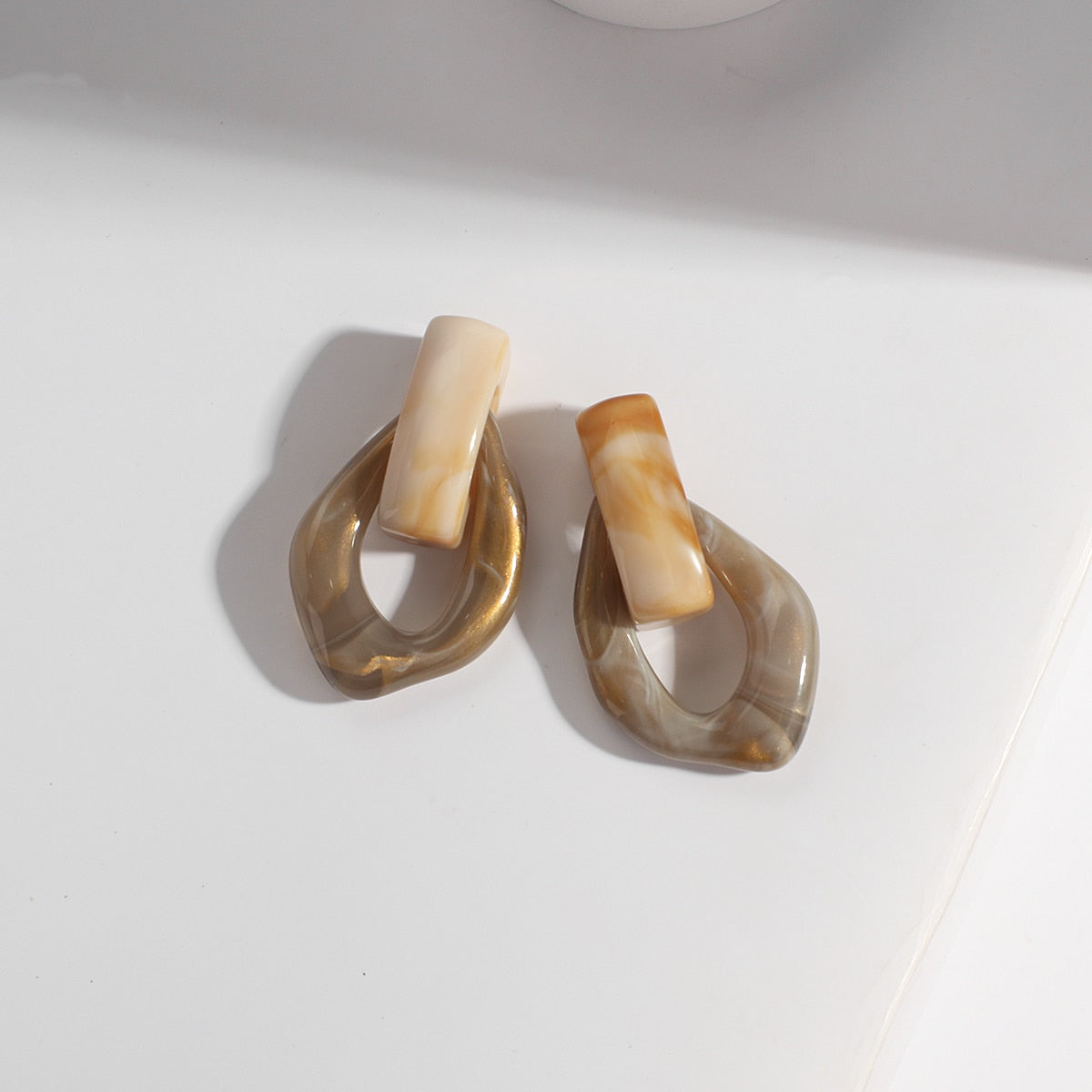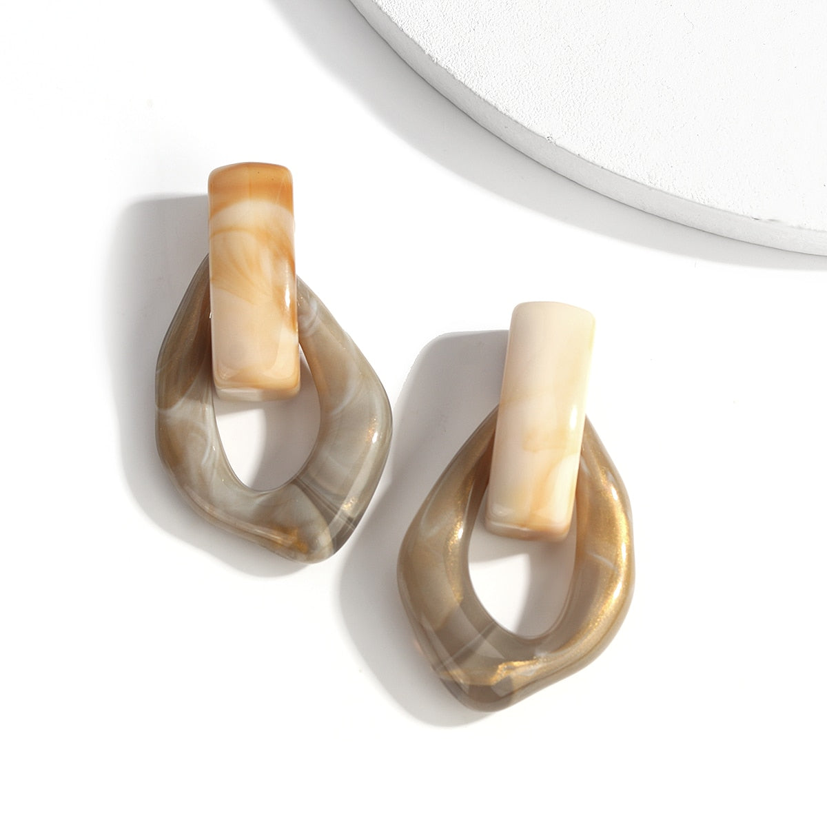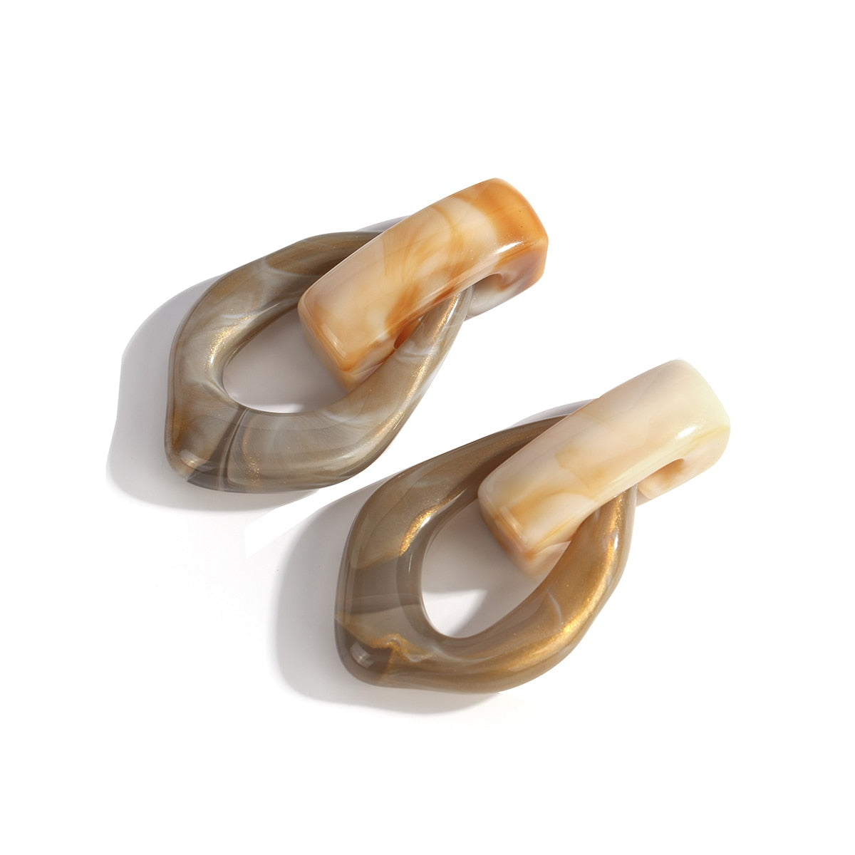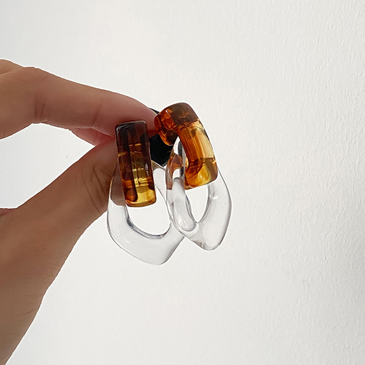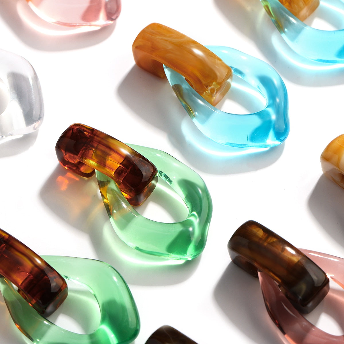 Sia Colorful Clear Resin Acrylic Water Drop Earrings. Trendy jumbo water drop shaped earrings in clear color resins. Chunky chain link/Geometry design in two tone colors.