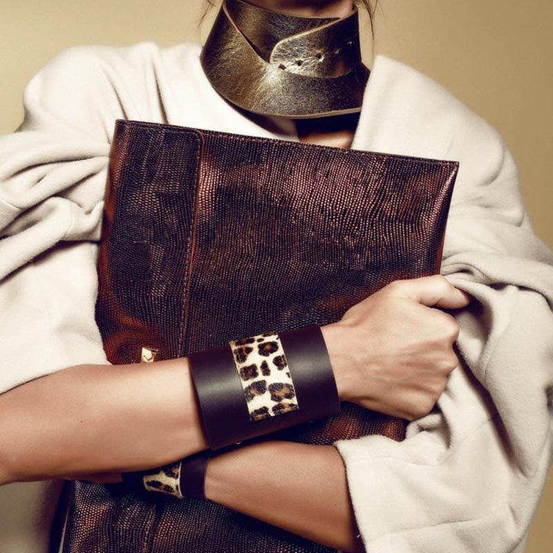 Sian Animal Print Cuff Leather Bracelet - 6 Patterns. Cool large cuff style leather bracelet with leopard print & fur textured band details. Simply impactful style item that works with solid basics and more.