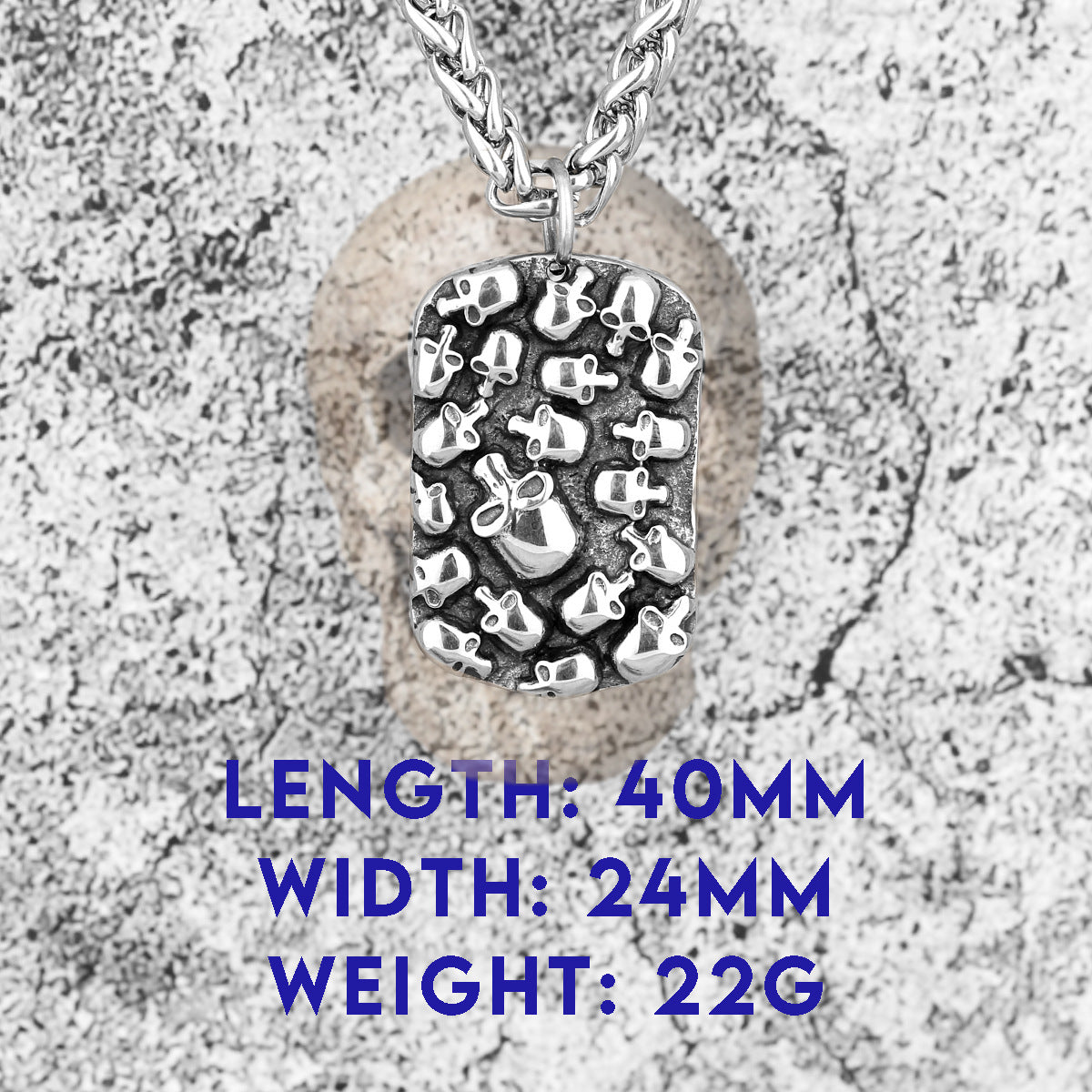 Make a bold statement with this Skull Square Soldier's Tag Necklace! This unique and daring design will add the perfect touch of edge to any look. Step out of your comfort zone and take a walk on the wild side! Be daring. be bold and don't be afraid to show off your style.