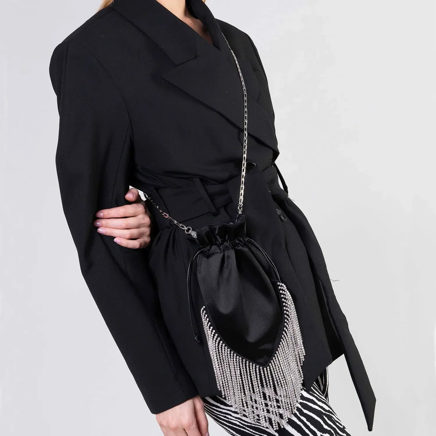 Slaine Rhinestone Tassel Silk Pouch Evening Bags