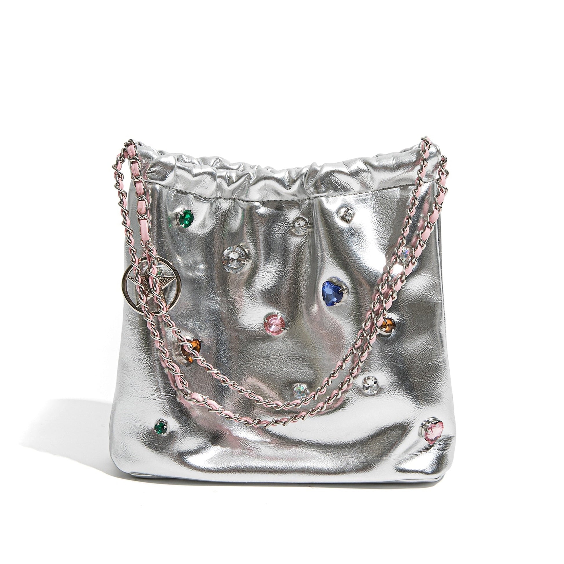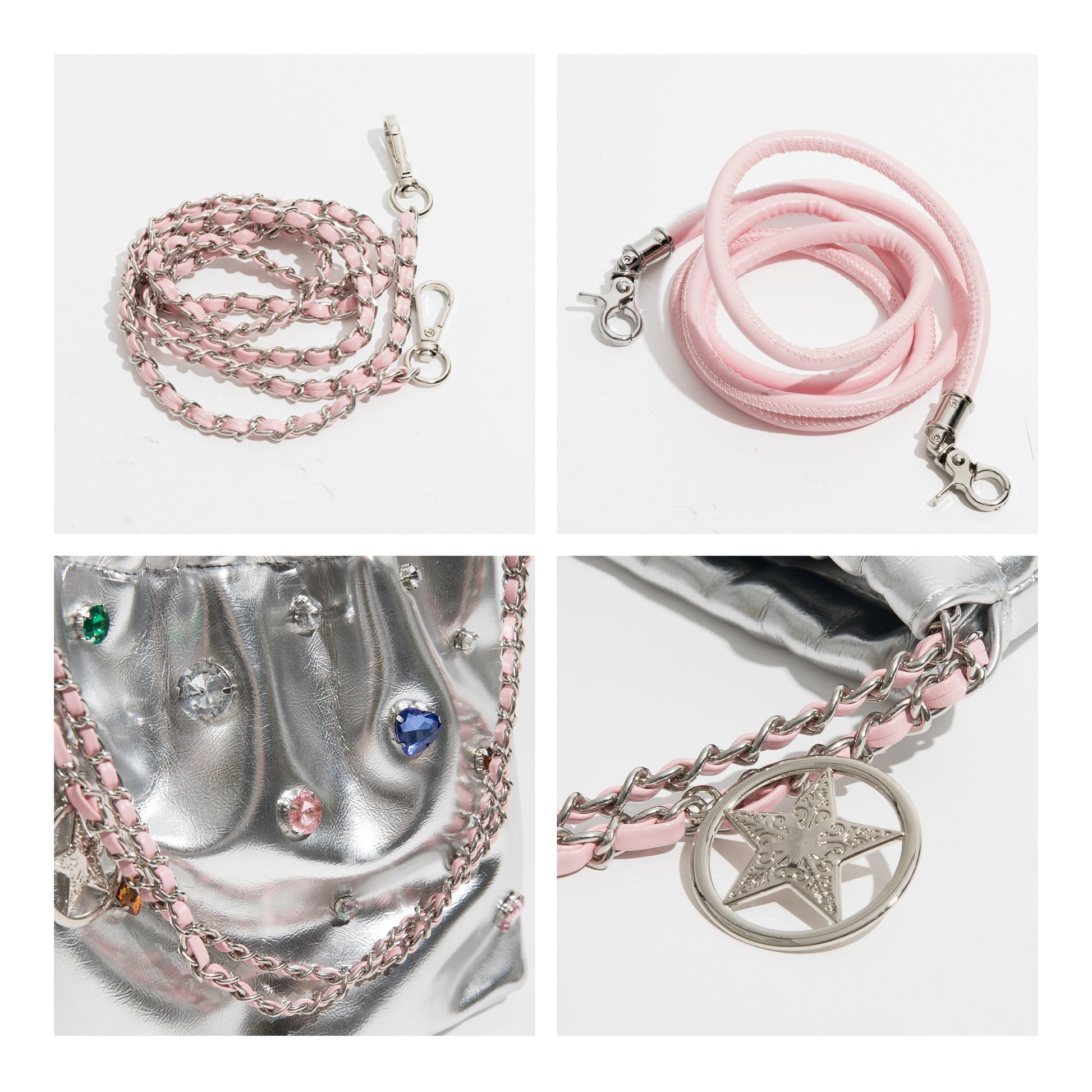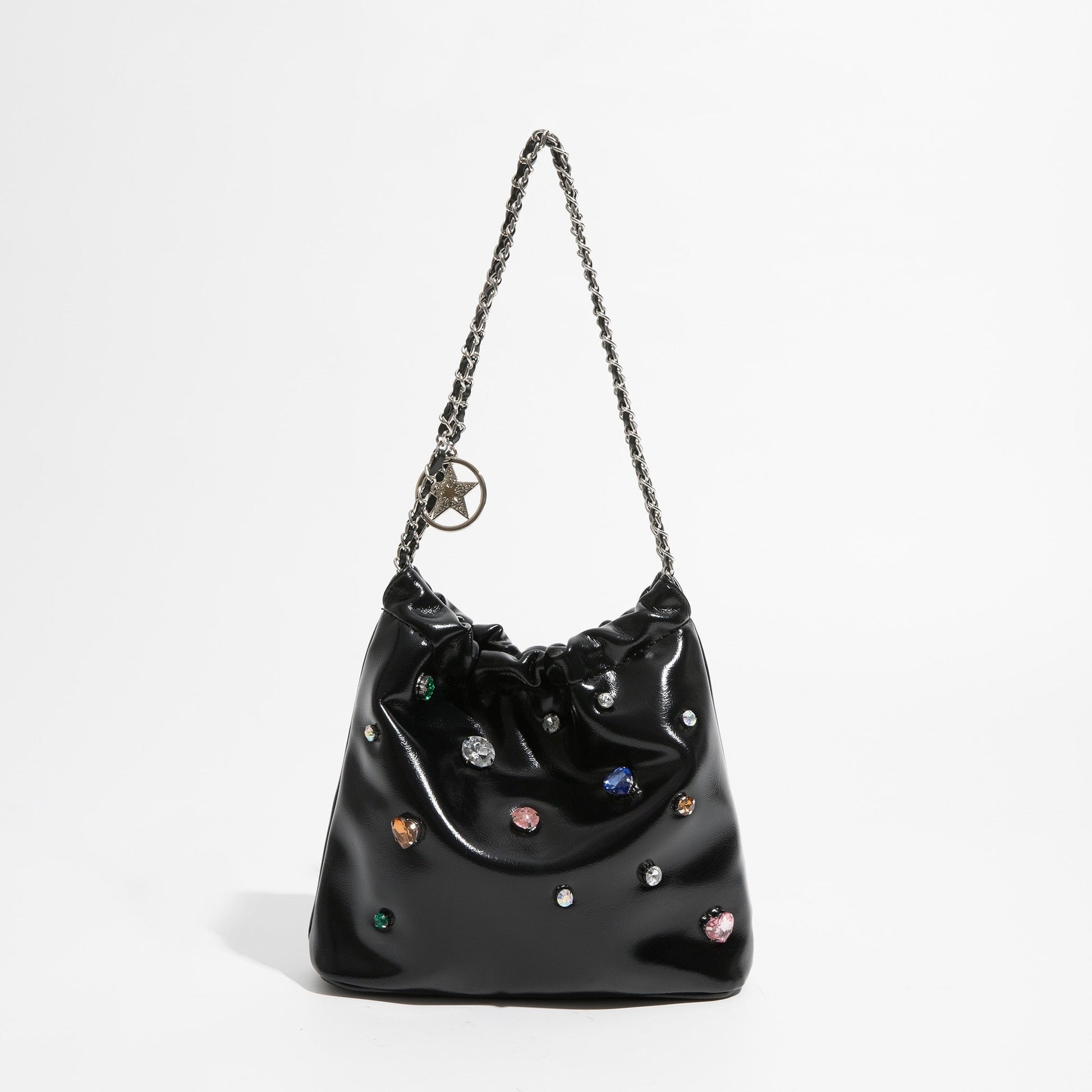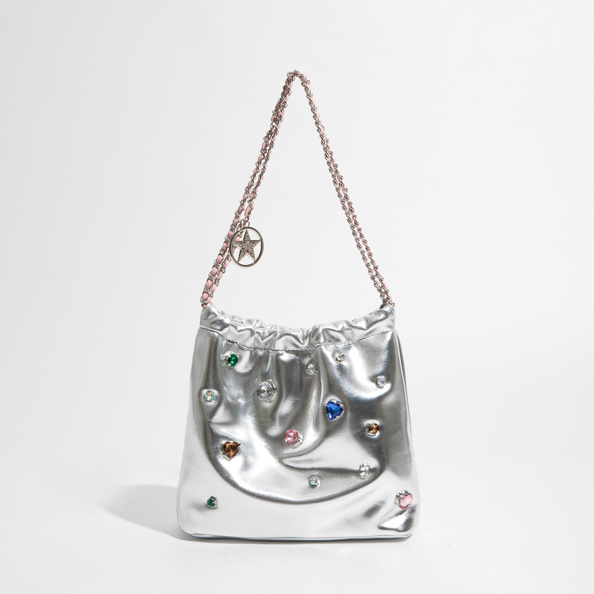Never miss a moment with the Sobie Gemstone Embellished Shine Hobo Bag! This sparkling accessory brings dazzling silver shimmer and patent leather with a braided chain strap and star charm. Make an unforgettable impression every time you don it!