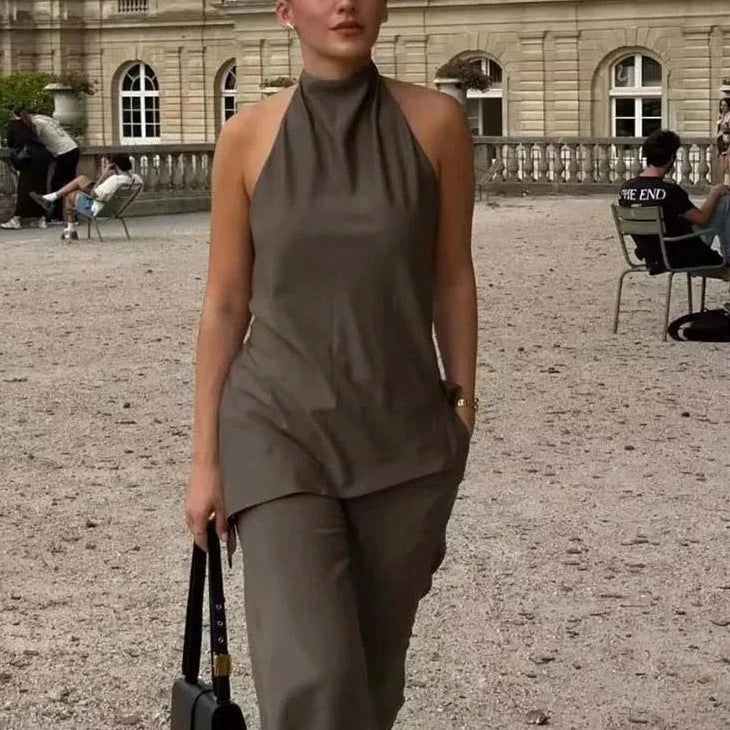 - Item Type: Halter Top. Wide Leg Pants. Outfit Set