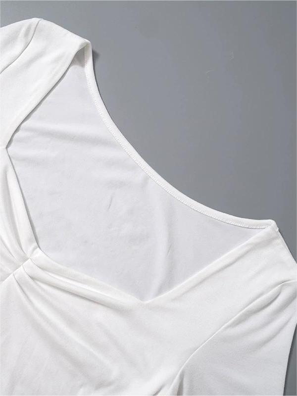 Solid Color Long Sleeve Crop Top with Square Neck and Slit