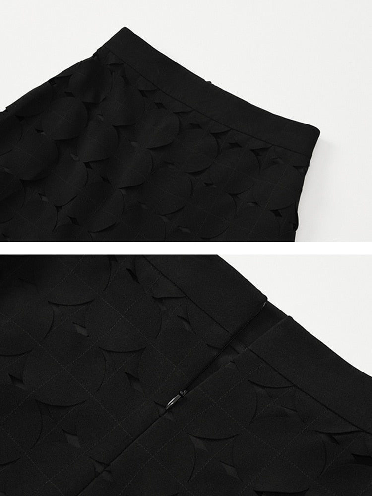 Sonya Midi Skirt with Circle Tassels. Stylish Midi skirt with cut out bodice with beautiful cascading circle tassel fringe at the hems. Elegant and high fashion looks. Hit at ankle or lower depending on your height.