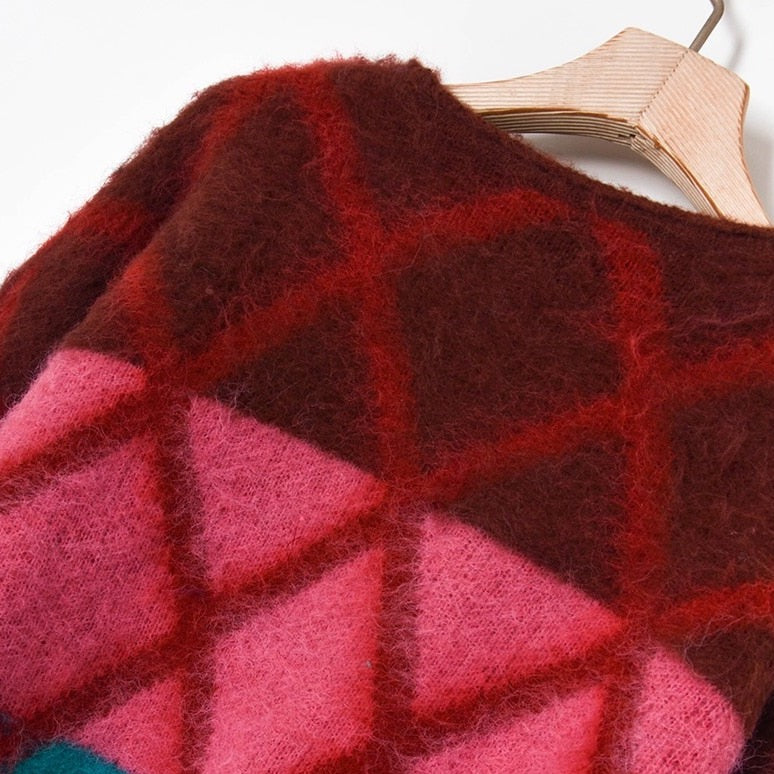 Sophia Lattice Embellished Cropped Sweater - 2 Colors. Stylish multi-color crisscross lattice pattern sweater with beads and rhinestone embellishment. Cropped length these sweater could worn as overlaying style or tucked-in. Can you get more prettier than these?