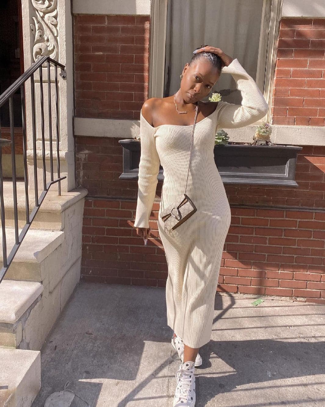 Square Neck Long Sleeve Soft Sweater Dress