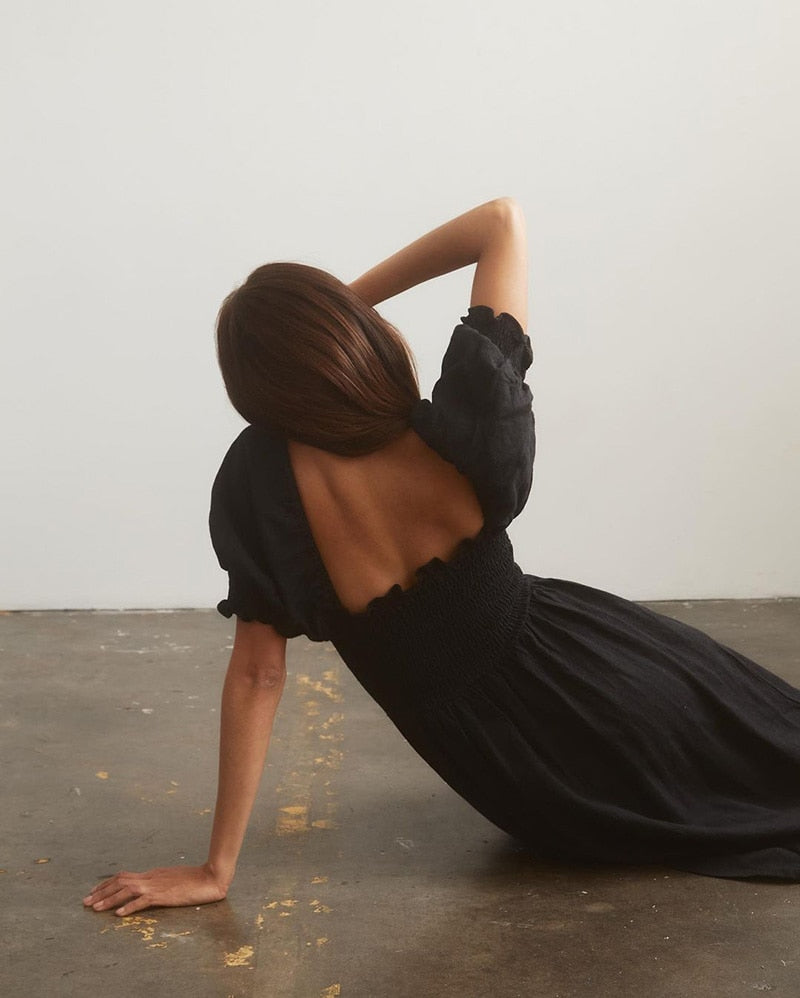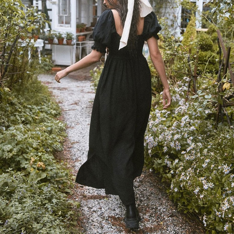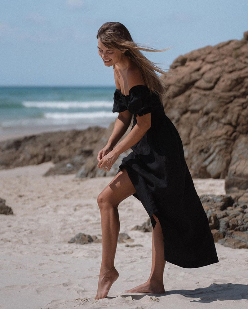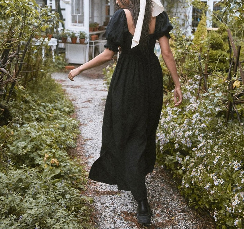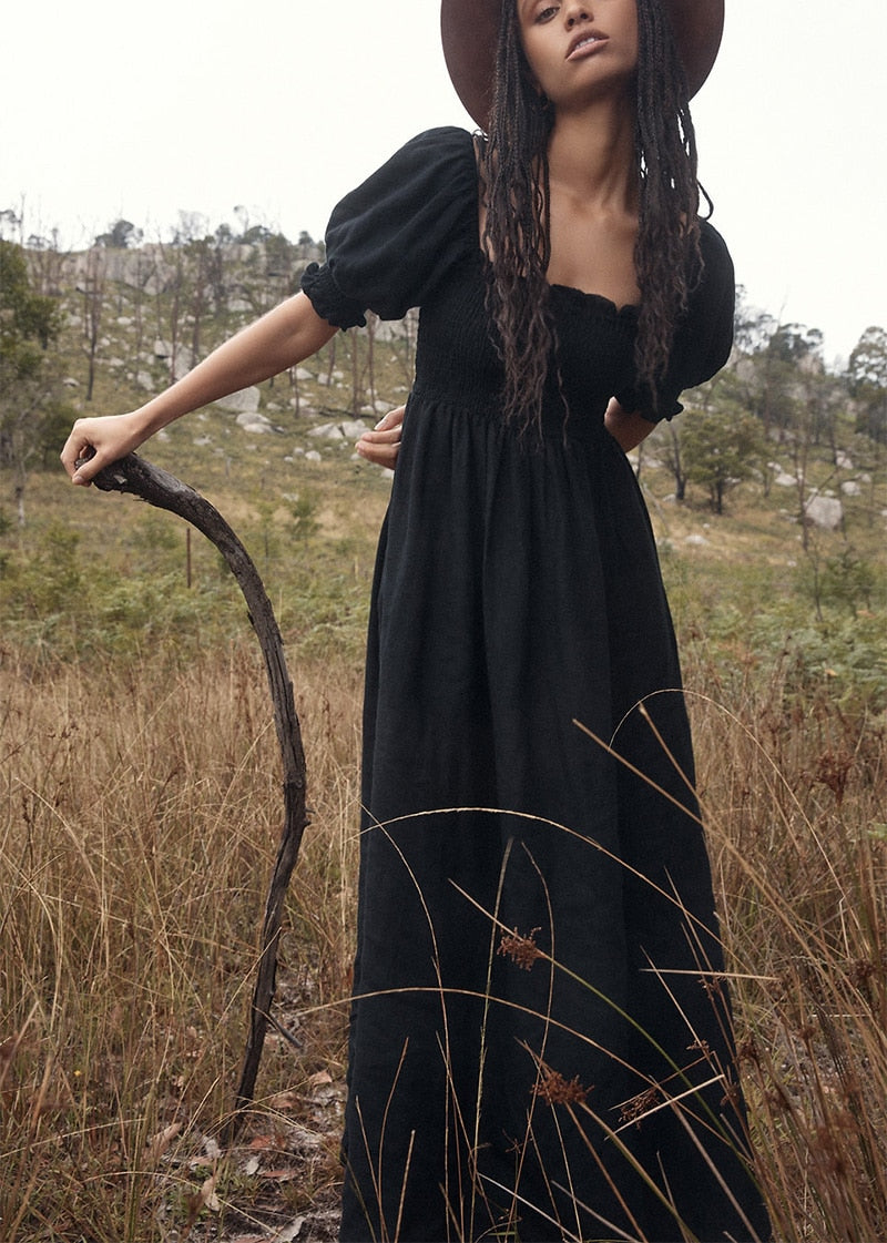Summer Dresses For Square Neck Smocked Short Puff Sleeve Vacation Beach Style