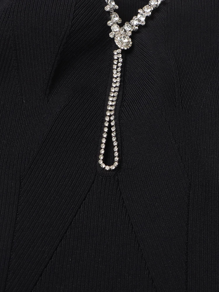 Add a touch of sparkle to your wardrobe with our Suria Rhinestone Neckline Mini Dress! This playful and flirty dress features a stunning rhinestone neckline that will catch the light and turn heads. Perfect for a night out or a special occasion. this dress will make you feel confident and glamorous.