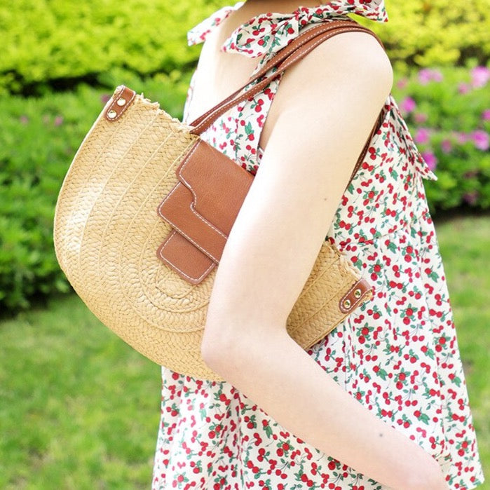 Syria Halfmoon Raffia Shoulder Bags - 2 Colors