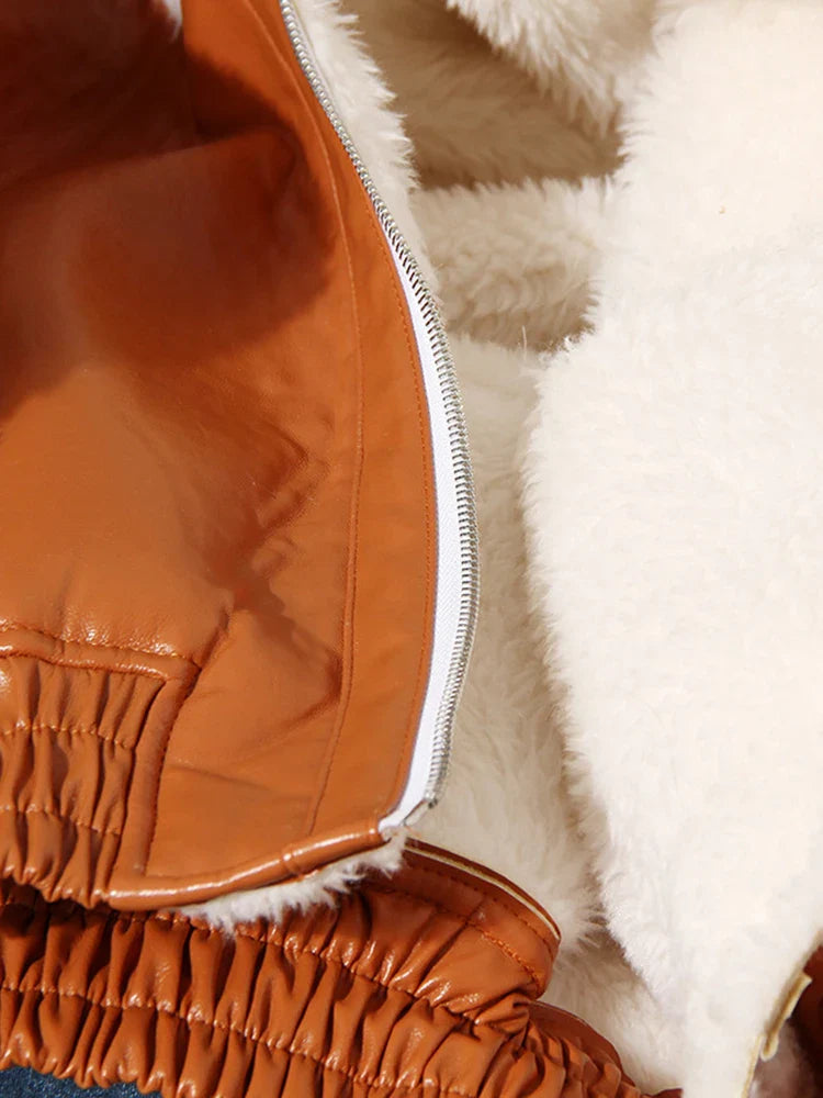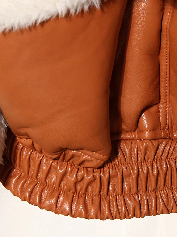 Stay cozy and stylish with our Tashi Lambswool Shearling Hooded Cropped Jacket. Made with sherpa faux fur shearling. this jacket will keep you warm while adding a touch of luxury to any outfit. Inspired by boxer's hoodie and gloves. this vibrant Caramel Brown jacket is a must for a sport chic. Say goodbye to boring winter wear and hello to fashion-forward comfort. (Faux fur but real warmth!)"