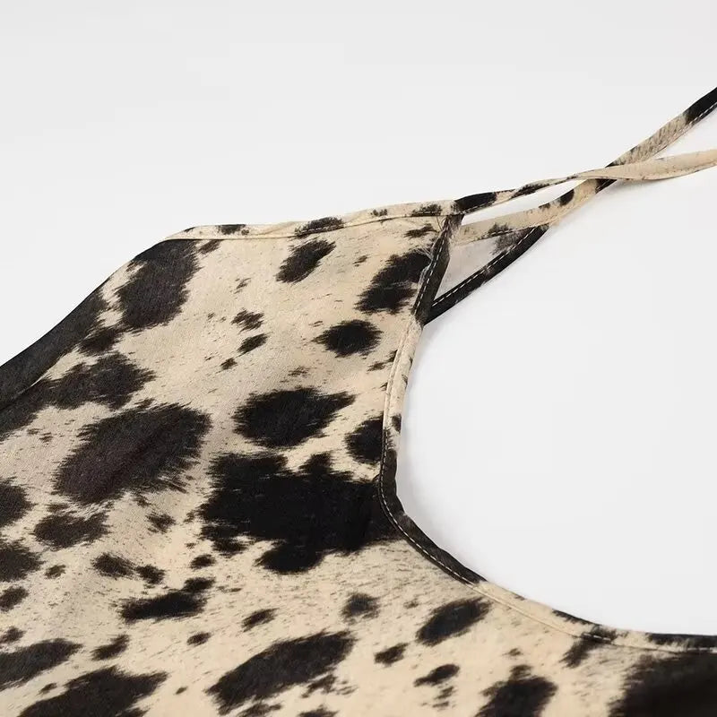 Get ready to "moo-ve" some heads with the Tena Paint Splash Tie Dye Slip Dress. Channeling cow hide or animal print vibes with its tie dye print. this basic yet sexy slip dress will look stylish to any look. Casually or dressed up this slip dress should be in anyone's closet.Â