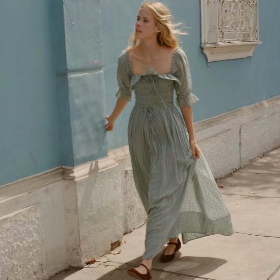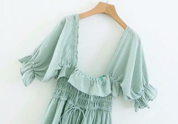 Tess Vintage Square Neck Boucle Dot Maxi Dress