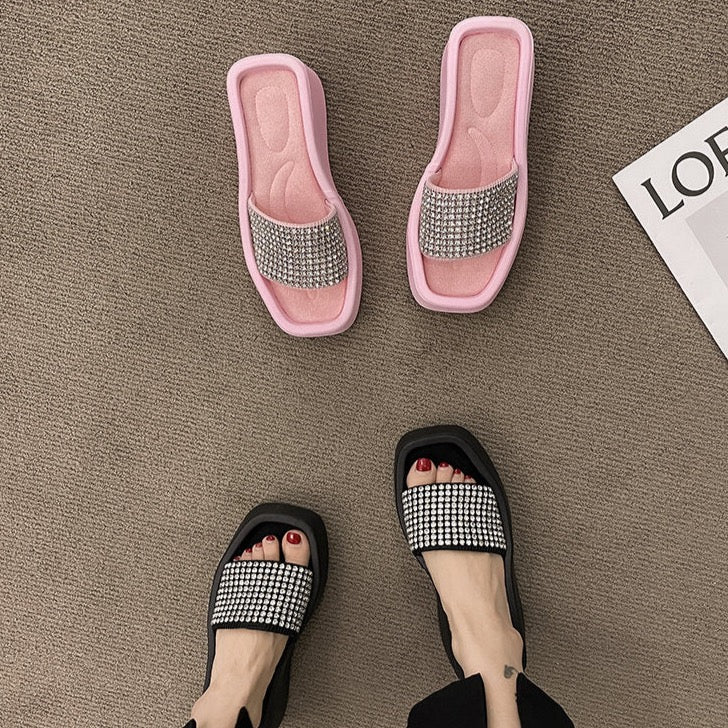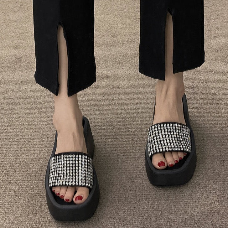 Thierry Rhinestone Sequin Upper Platform Slippers - 2 Colors