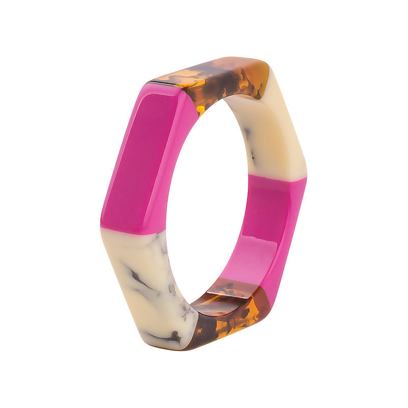Tora Colorblock Resin Bracelet Bangle - 10 Colors. Beautiful colorblock resin bangles in hexagon shape. These elegant and timelessly classy bracelet comes in 13 color styles. Wear one or a couple together or mix match with your existing bracelets to personalize. Great as gift.