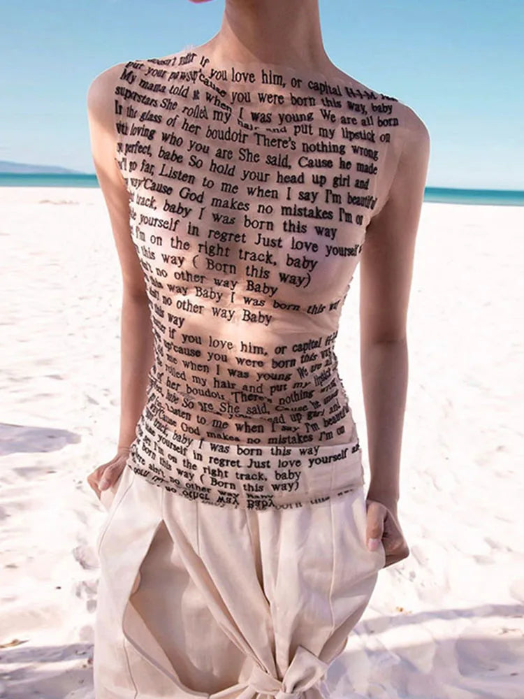 Trendy Mesh Round Collar Slim Fit Cami Top