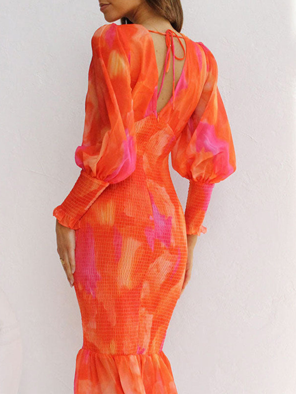 Elevate your evening elegance with our V-Neck Evening Gown Open Back Midi Dress.