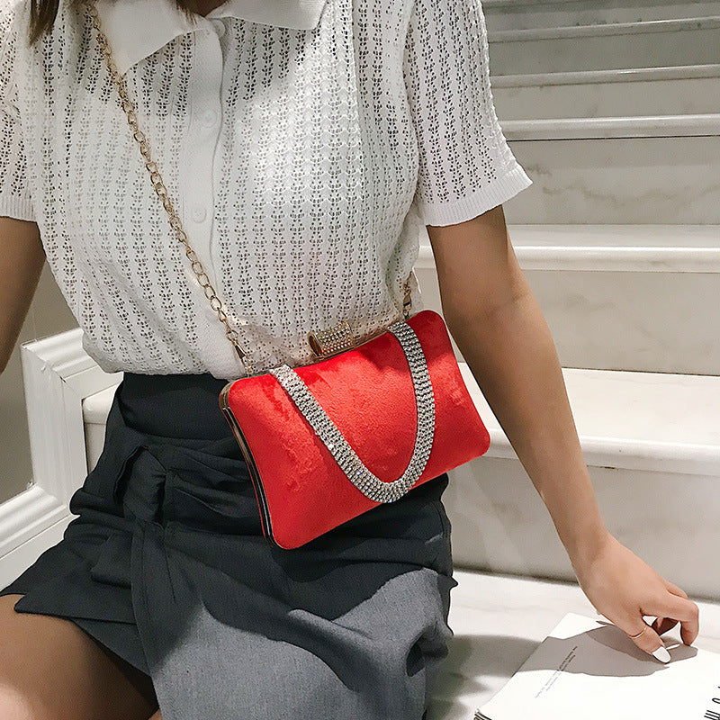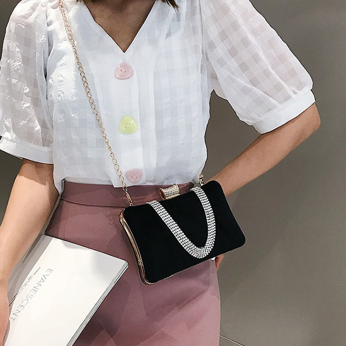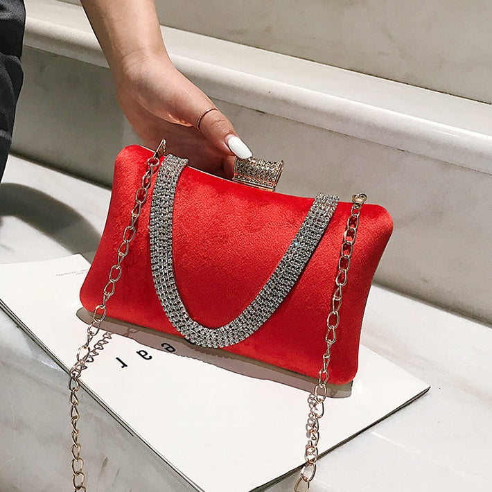 For a more sophisticated take on the classic clutch bag. the Velvet Flask Dinner Bag is sure to please. It features a flask shape design. embellished with an array of sparkling crystals. and an elegant clasp closure. Available in red and black. This elegant clutch bag adds just the right amount of glitz to make any outfit shine!