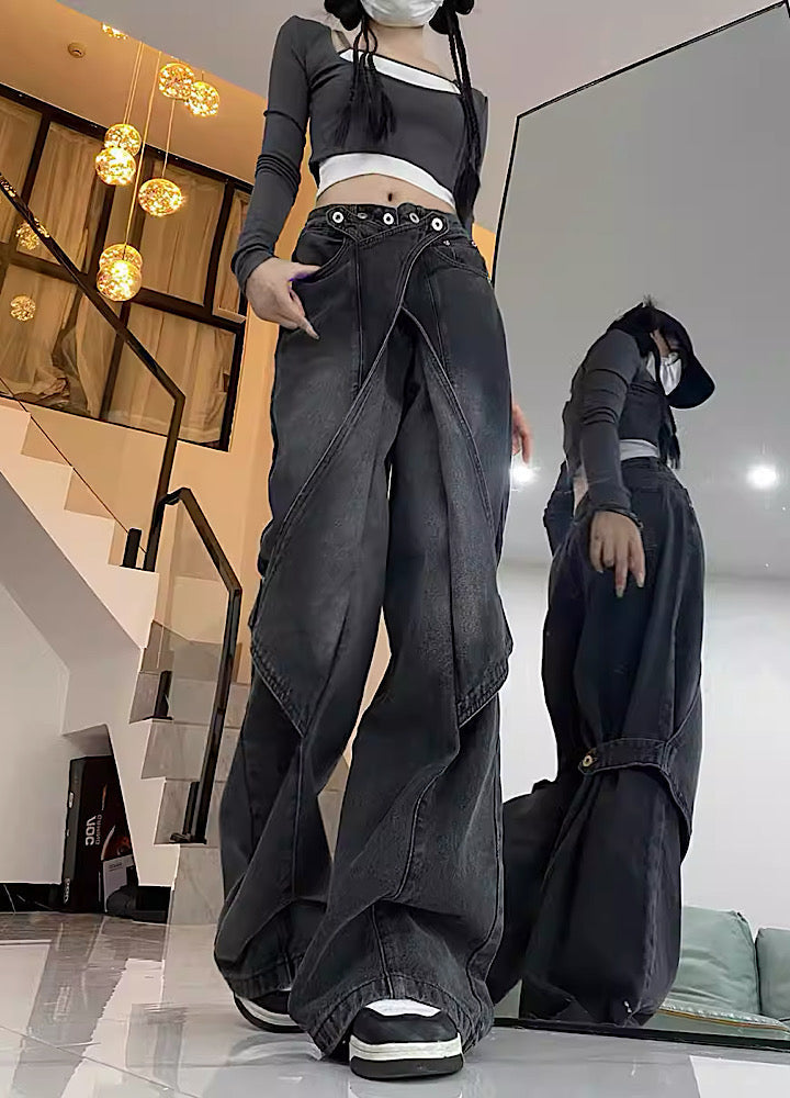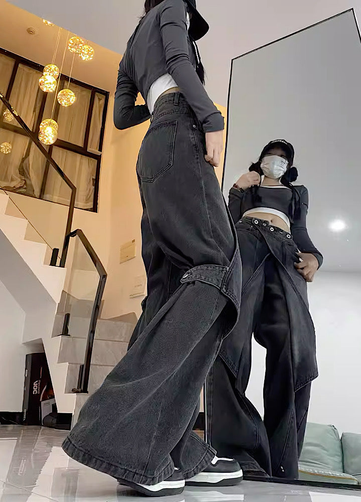 Vintage Cross Design Graphic Wide Flare Denim Baggy Jeans