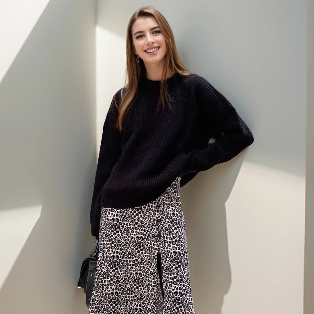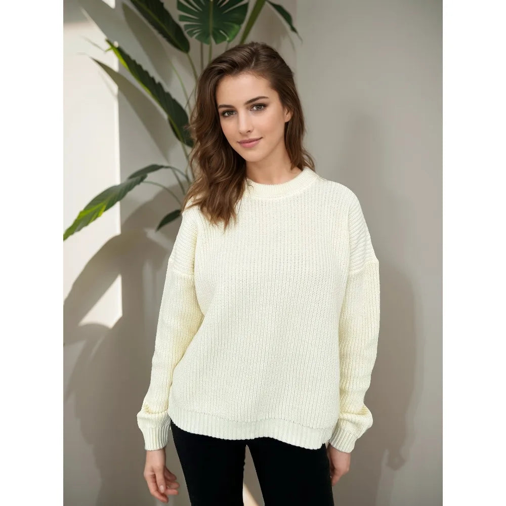 Warm Vintage Green Knitted Oversized Thick Loose White Sweater