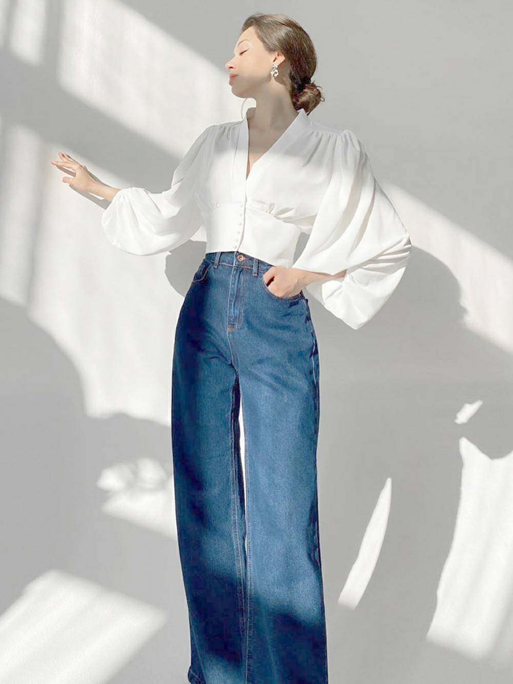 Here is a brown y neck puff long sleeve crop top women. This top is from our collection crop tops.