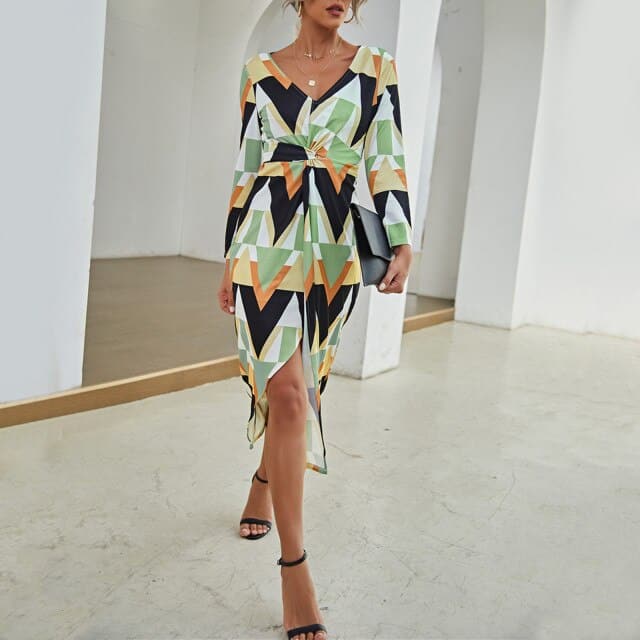Gingham Dress Linen-blend Checkered V-neck Tie Waist Wrap Side Split Midi Dress Autumn Party Dresses Clothing