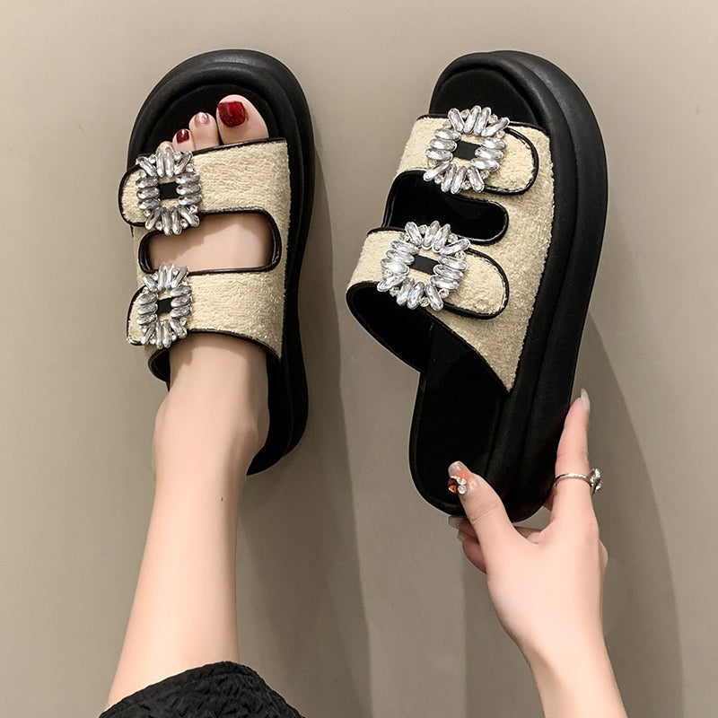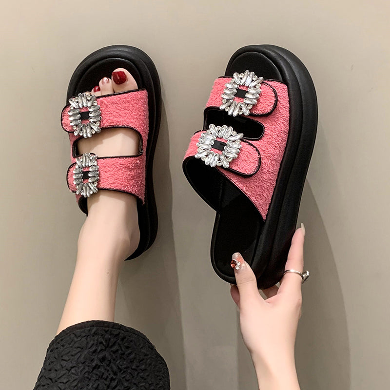 Wren Rhinestone Buckle French Terry Sandals
