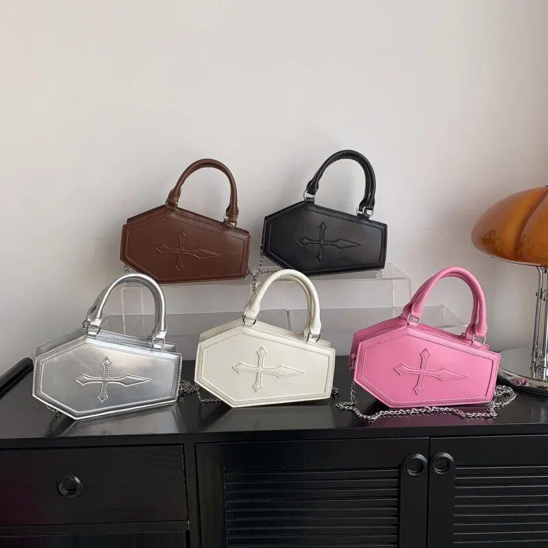 Embrace your love for unique fashion. Add the Y2K Gothic Coffin Handbag to your collection today and turn heads wherever you go. Remember. fashion is not just about clothing; it's an expression of your unique style and personality. Make your mark with this exquisite handbag.Share