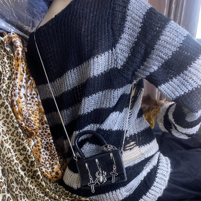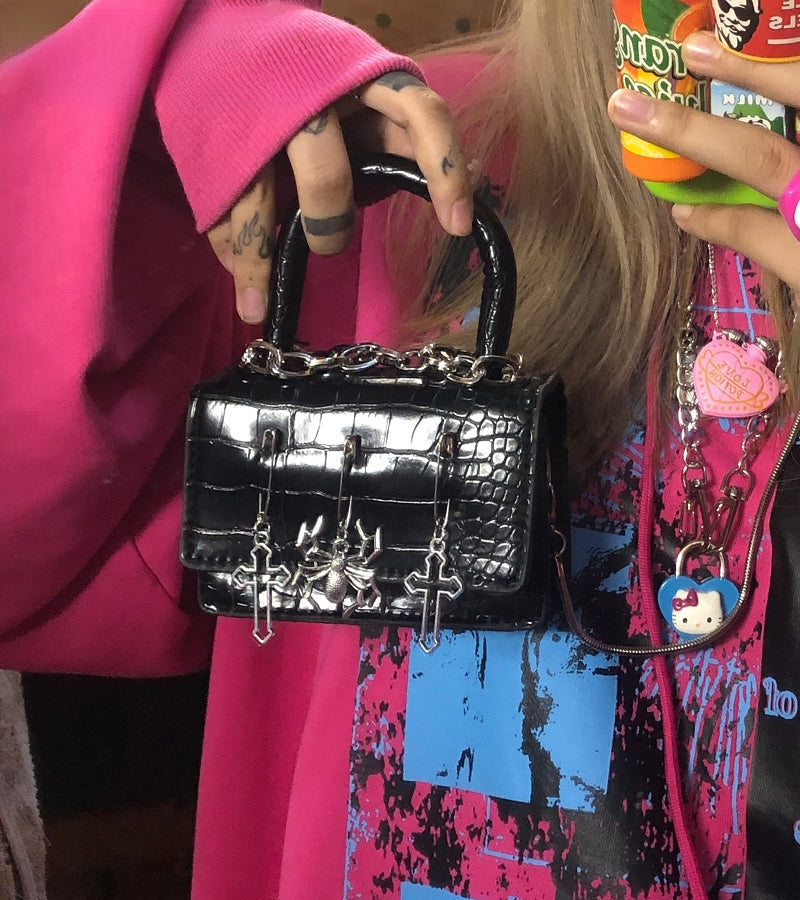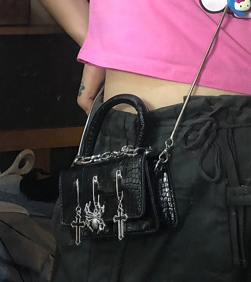 Y2K Gothic Metal Punk Pin Small Spider Rabbit Decorate Messenger Bag