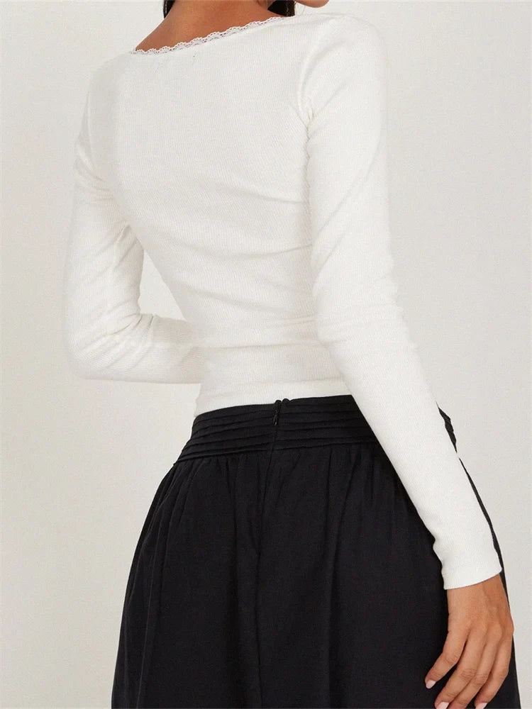Y2K Lace Knitted Ribbed Long Sleeve Fairy Grunge Slim Fit Harajuku T-shirts