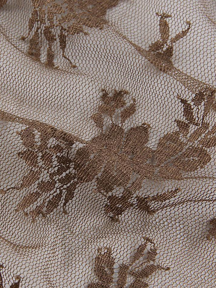Design: Open Front With Tie Strap Detail. Sheer Lace Fabric