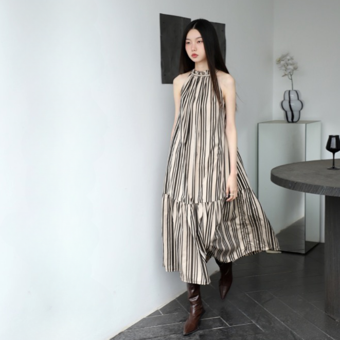 Look your best in this Yejin Vetical Stripe Halter Maxi Dress! Its sleeveless vertical striped design will have you standing out from the crowd. Perfect for any elegant or casual occasion. this fabulous maxi is sure to make onlookers do a double take! Look super chic. stay comfy!