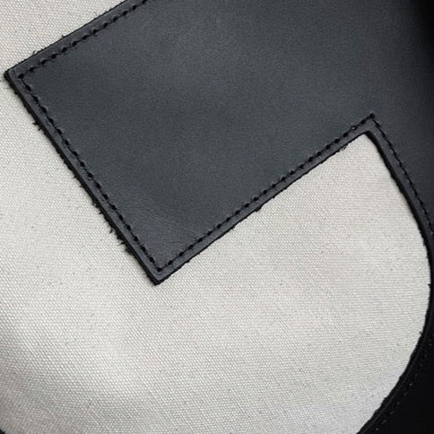 Yumi G Maxi Canvas Bag - 2 Colors. Utilitarian jumbo bag with color contrast geometric patchwork. Minimalist cool with big statement letter patchwork. Brushed metal hardware details. Carry as tote. over the shoulder or crossbody style. You simply look good.