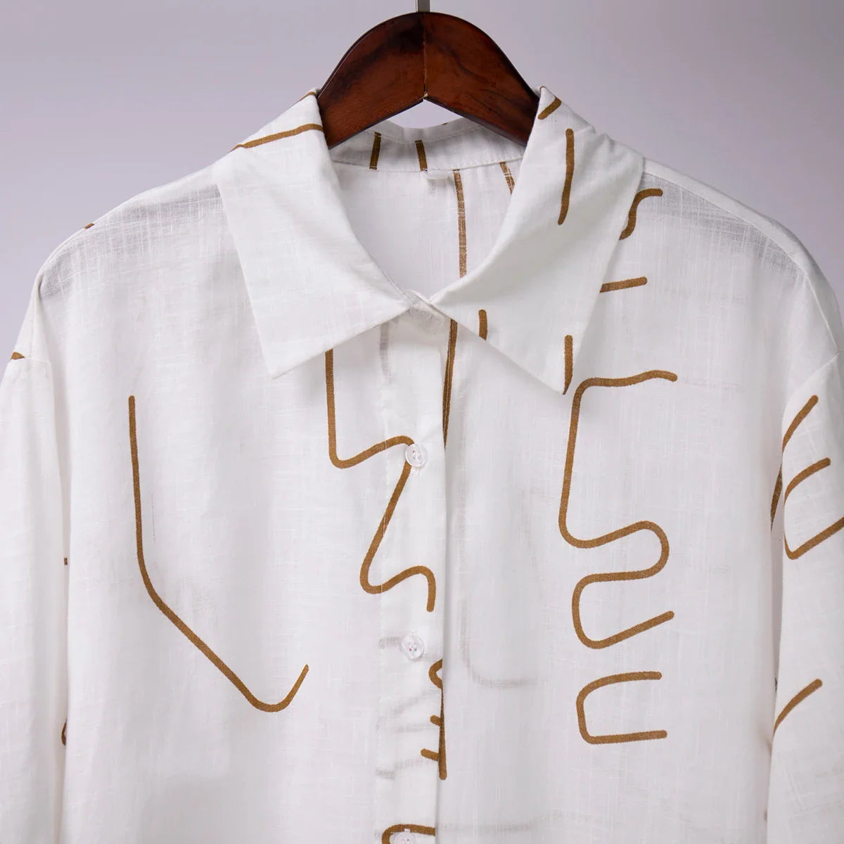 Get ready to be effortlessly stylish with our Zinnia Casual Line Drawing Print Shirts & Shorts Set! Featuring a unique line drawing arts print in light weight chambray fabric. this set will elevate your casual look to the next level. Perfect for any summery occasion or as pajamas. this set is a must-have in any wardrobe.Â