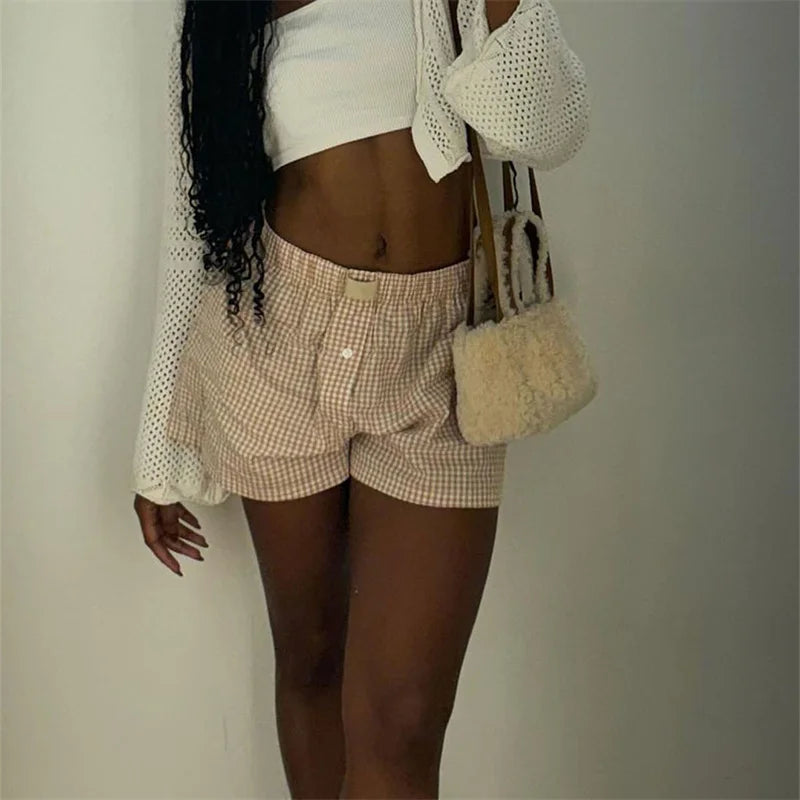 These Zoey Checked Casual Boxer Shorts are perfect for lounging around or running errands. With a playful checked design and relaxed fit. they'll keep you comfortable and chic. So go ahead and add a touch of quirk to your wardrobe with these fun boxer shorts! Of course. you can wear at home.
