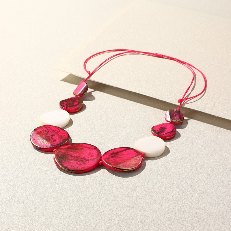 Our Zurah Colorful Circle Tribal Bib Necklaces add a touch of regal elegance to your wardrobe. with lustrous beads in six vibrant hues. This collection exudes timeless bohemian beauty. a perfect example of masterful artisan craftsmanship. Whether you choose to pair them with an evening gown or an everyday outfit. these necklaces are sure to bring a unique radiance to your look.