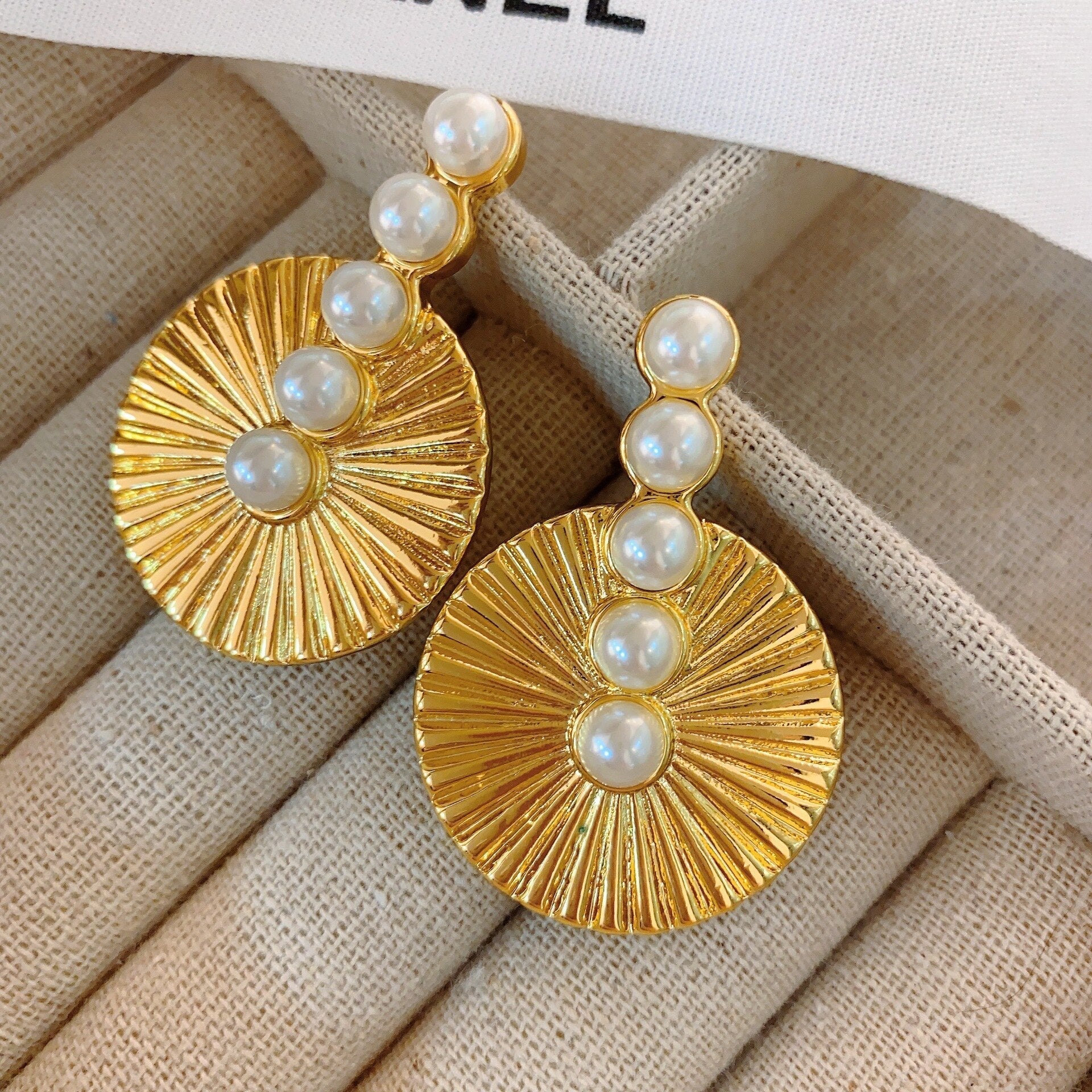 These Zuria Vintage Gold Disk and Pearl Earrings bring some serious style to the mix! An exquisite blend of classic and contemporary. these earrings are a timeless addition to any accessory collection. So don your very own "pearl-fect" pair—you'll be the talk of the town!Â